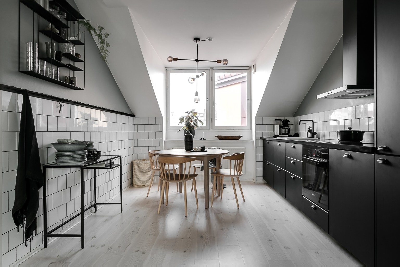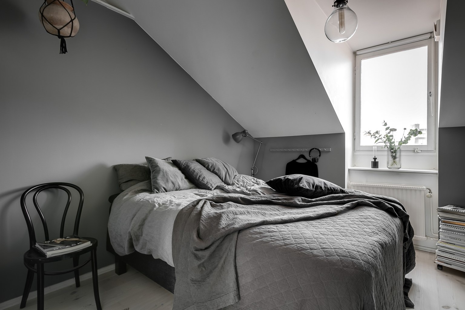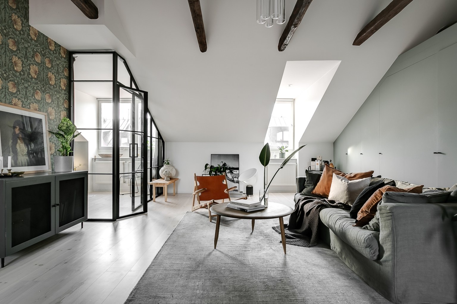 A svéd lakberendezésre jellemző letisztultság abszolút sajátja ennek a 75 nm-es remek elosztású és alaprajzú tetőtéri lakásnak.