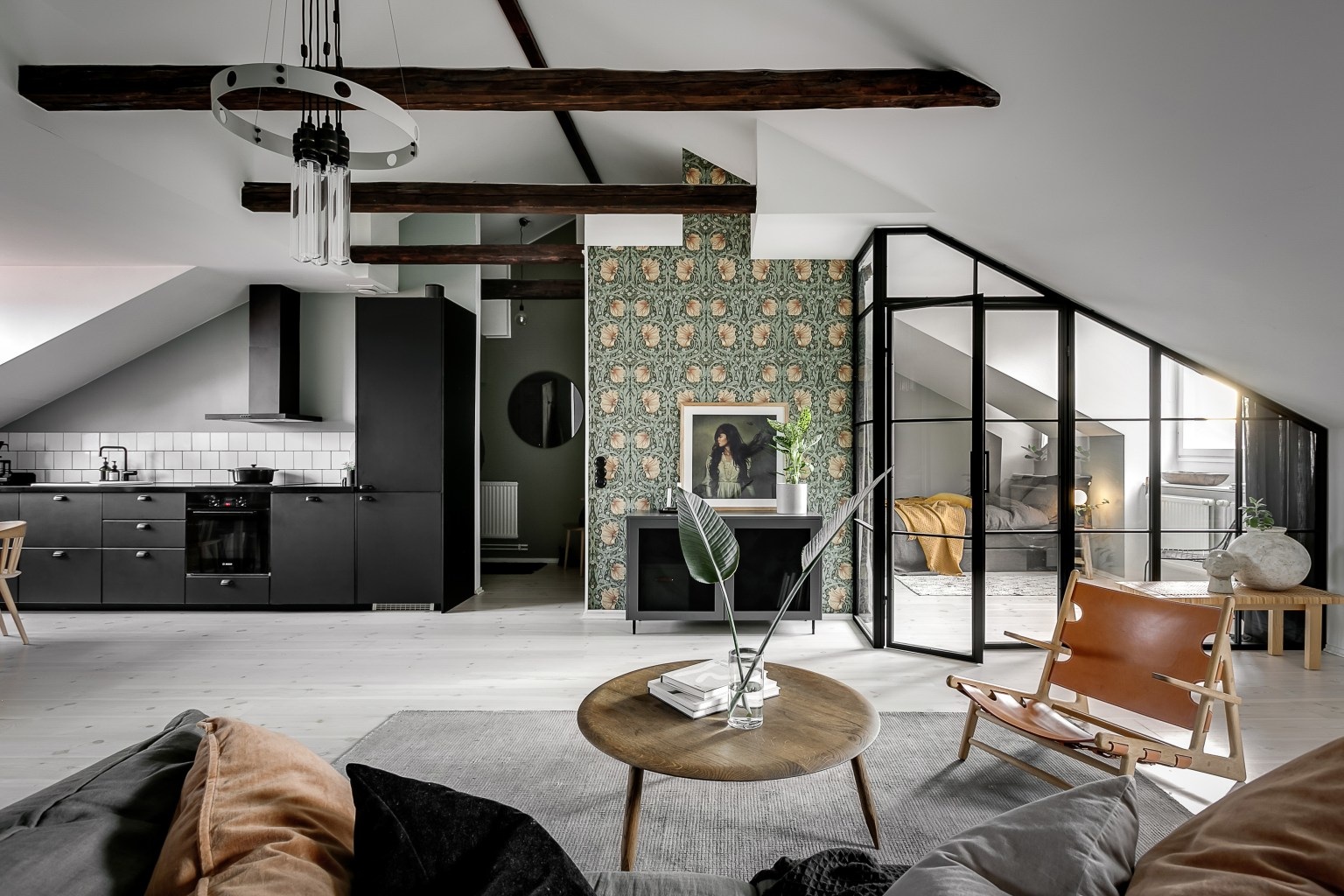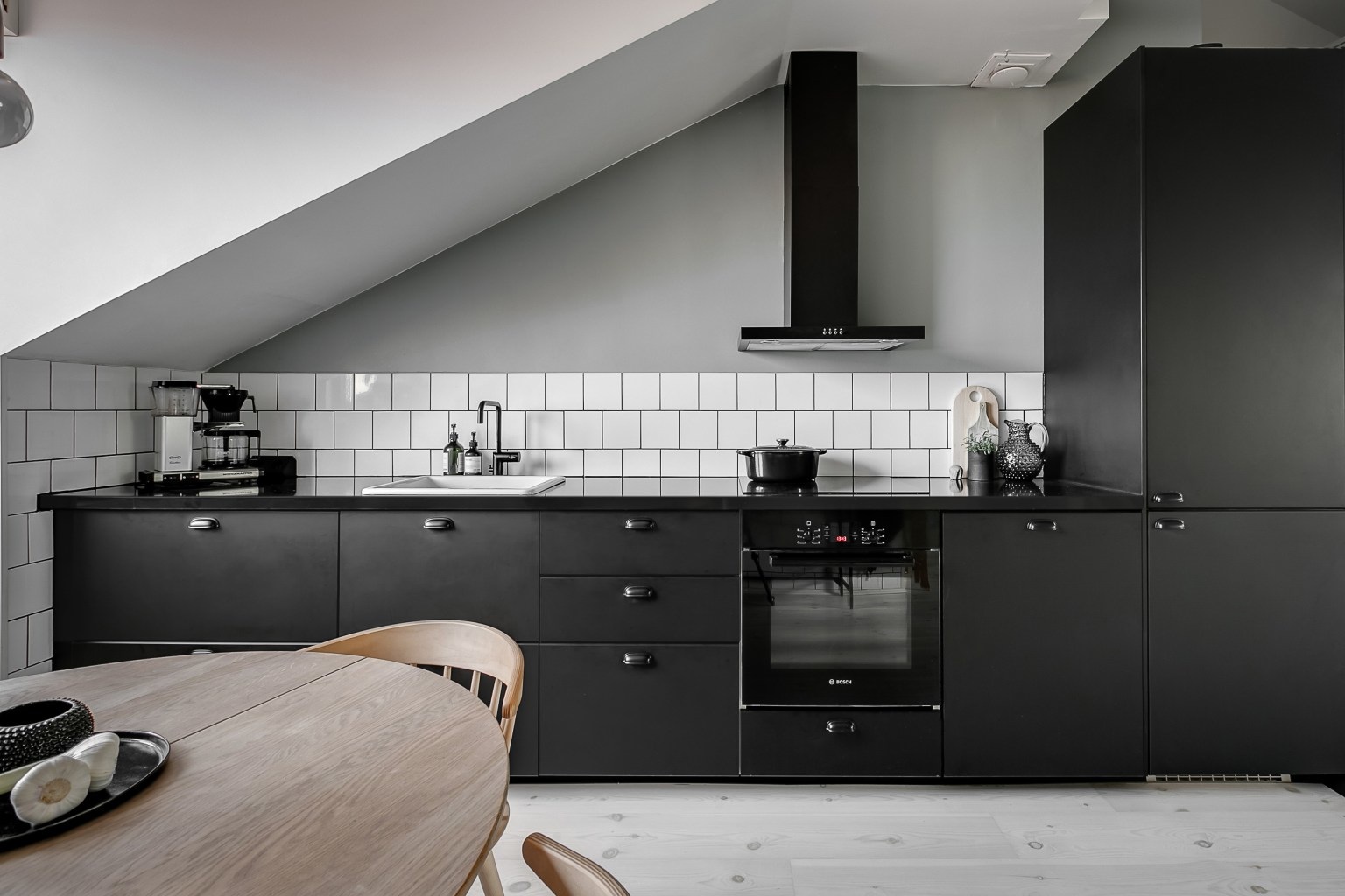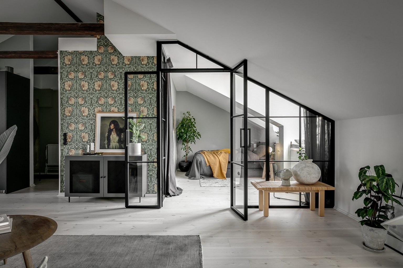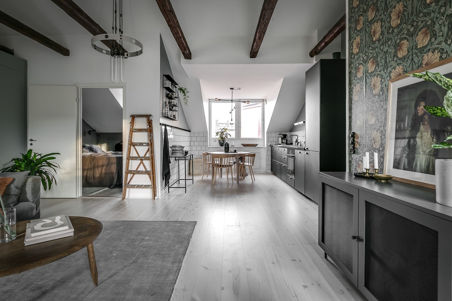 A svéd lakberendezésre jellemző letisztultság abszolút sajátja ennek a 75 nm-es remek elosztású és alaprajzú tetőtéri lakásnak.