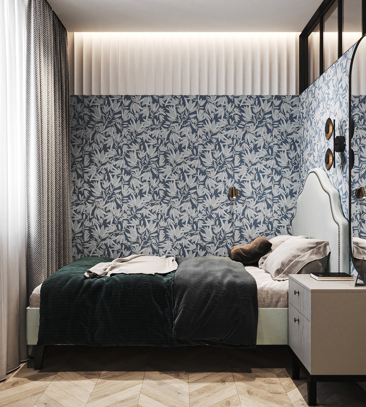 Kék burkolatú hálószoba - parafa ággyal