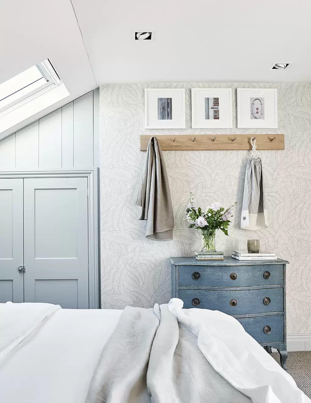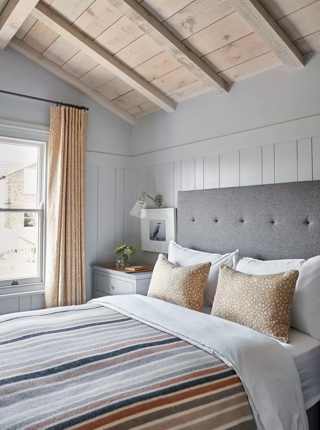 Egy neves angol belsőépítész újította fel londoni házát, ahol vegyítette a hagyományos és a modern stílusjegyeket. Különlegesség a szobák színes festése, van virágos tapéta is, és feltűnően sok fa, díszburkolat használata. Az üveg térelválasztó kiváló ötlet a nappali és előtér leválasztásához.