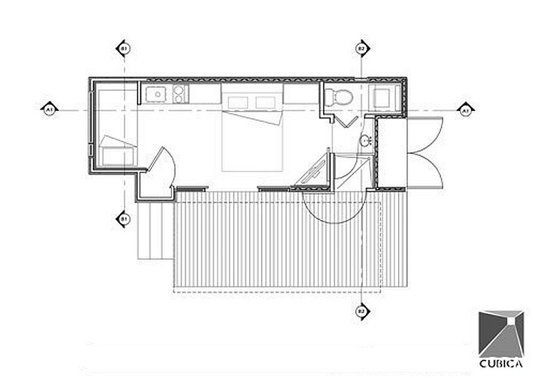 Egy ökológiai építésre szakosodott vállalat, a tengeri konténerek újrahasznosítása révén árulja ezeket a konténereket. Kínálja ezt a kis, 15 m²-es konténerházat, amelyet egy 20 lábú modul alapján terveztek, kompakt és tökéletes berendezése van. 4 fő részére, két felnőtt és két gyermek számára, ahol van konyha, étkezősarok, fürdő, pici nappali ráadásul egy csodálatos tetőterasszal is rendelkezik. 4 ember nyaralására ideális, ahol a szabadidőt a természetben tölthetik a pihenésre pedig itt a pici házikó.