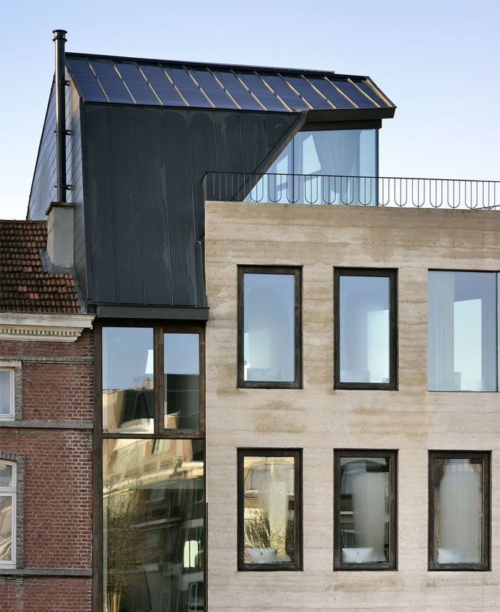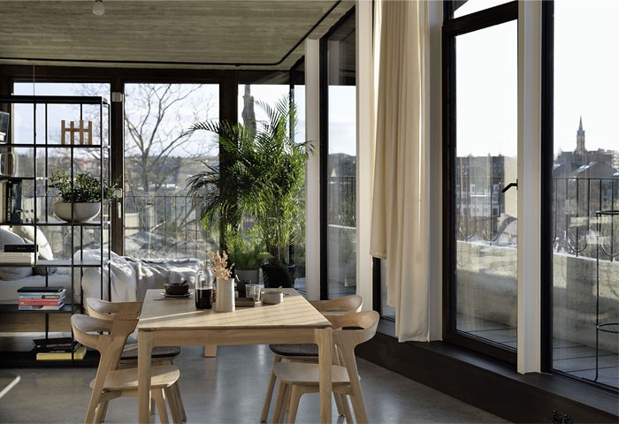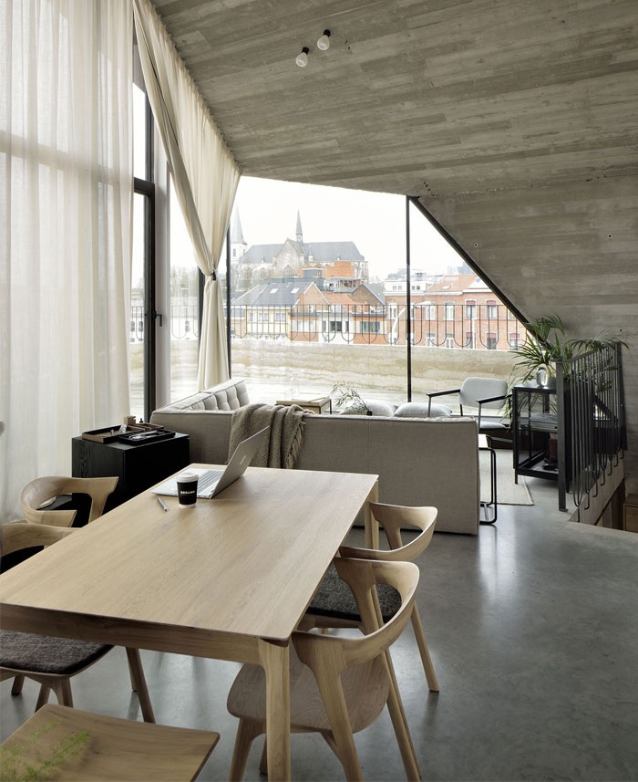 Belgiumban található ez a tetőtéri lakás, 50 m2-es, legfőbb jellemzője a hatalmas táblás üvegablakos kilátás Leuven városára.