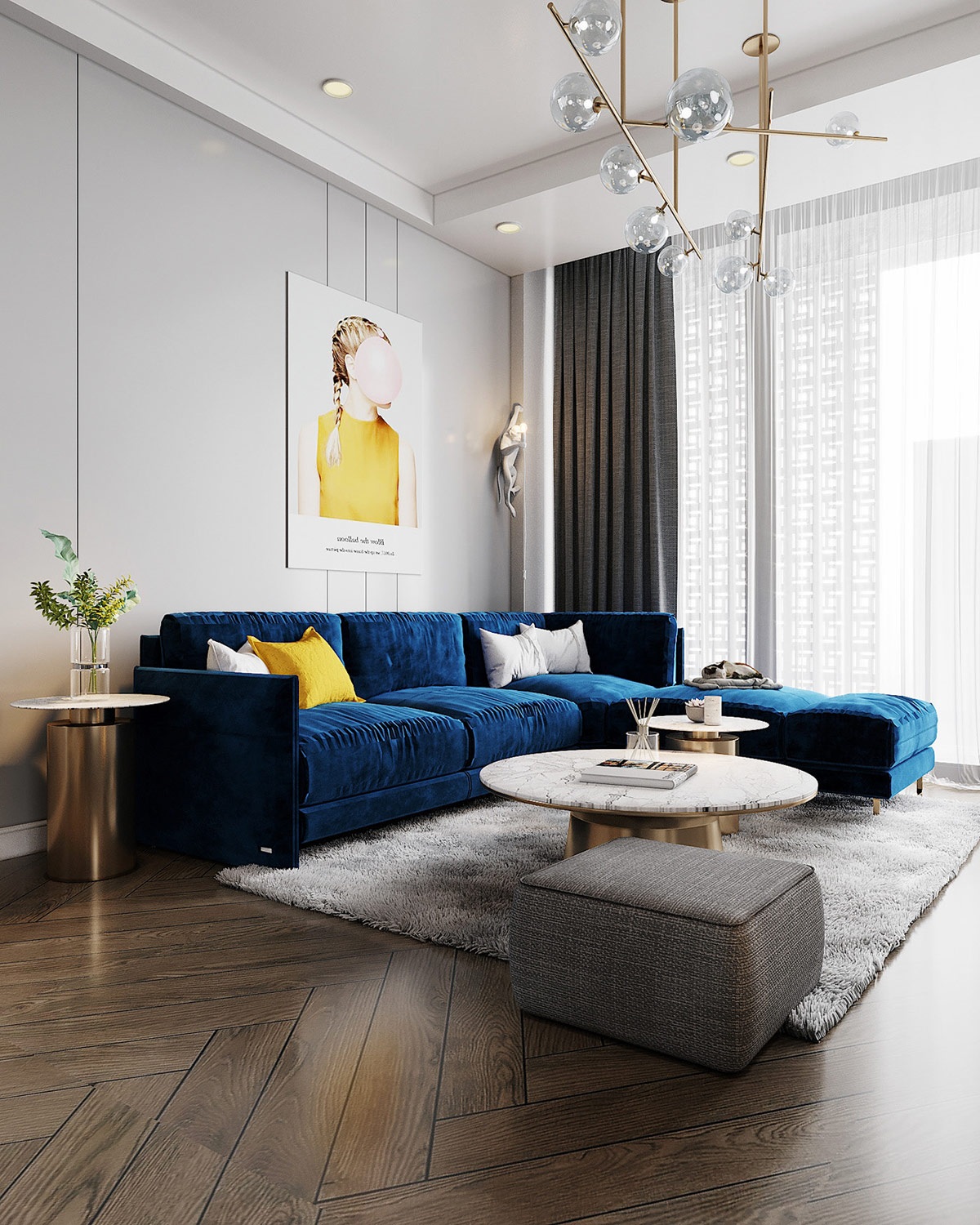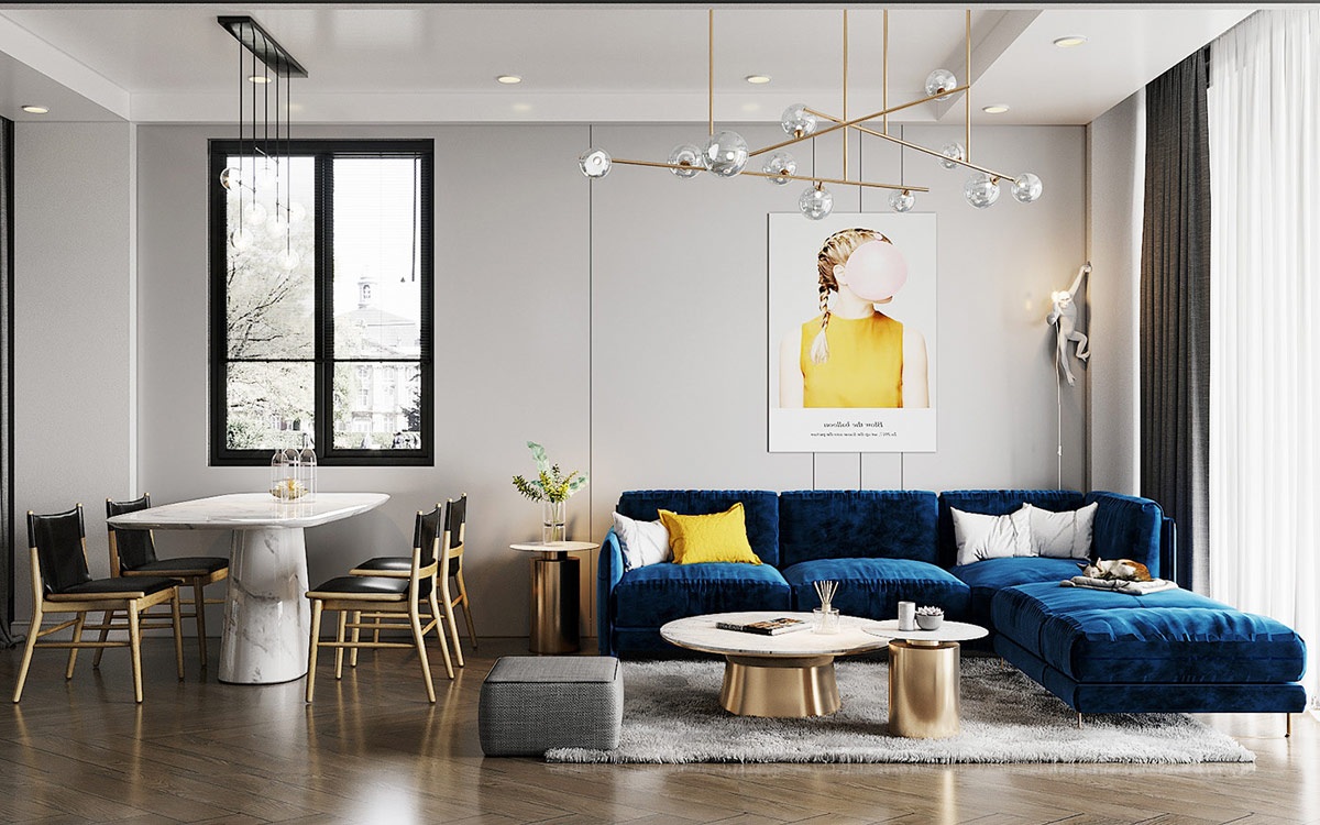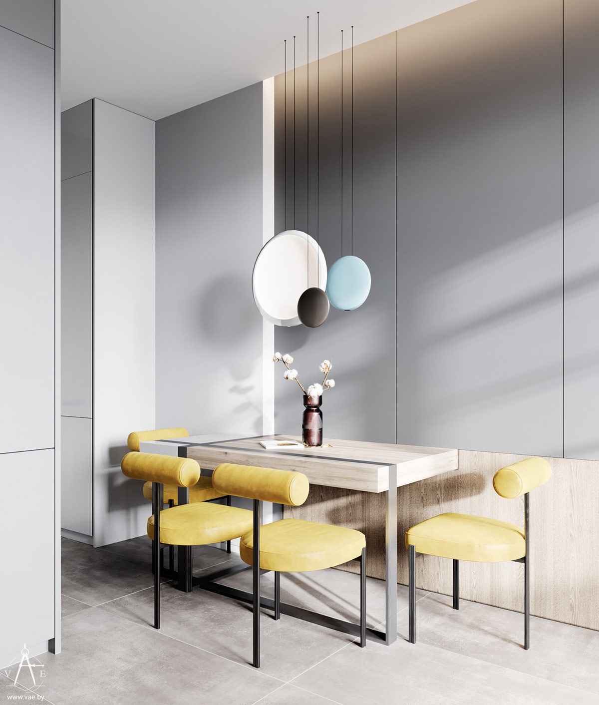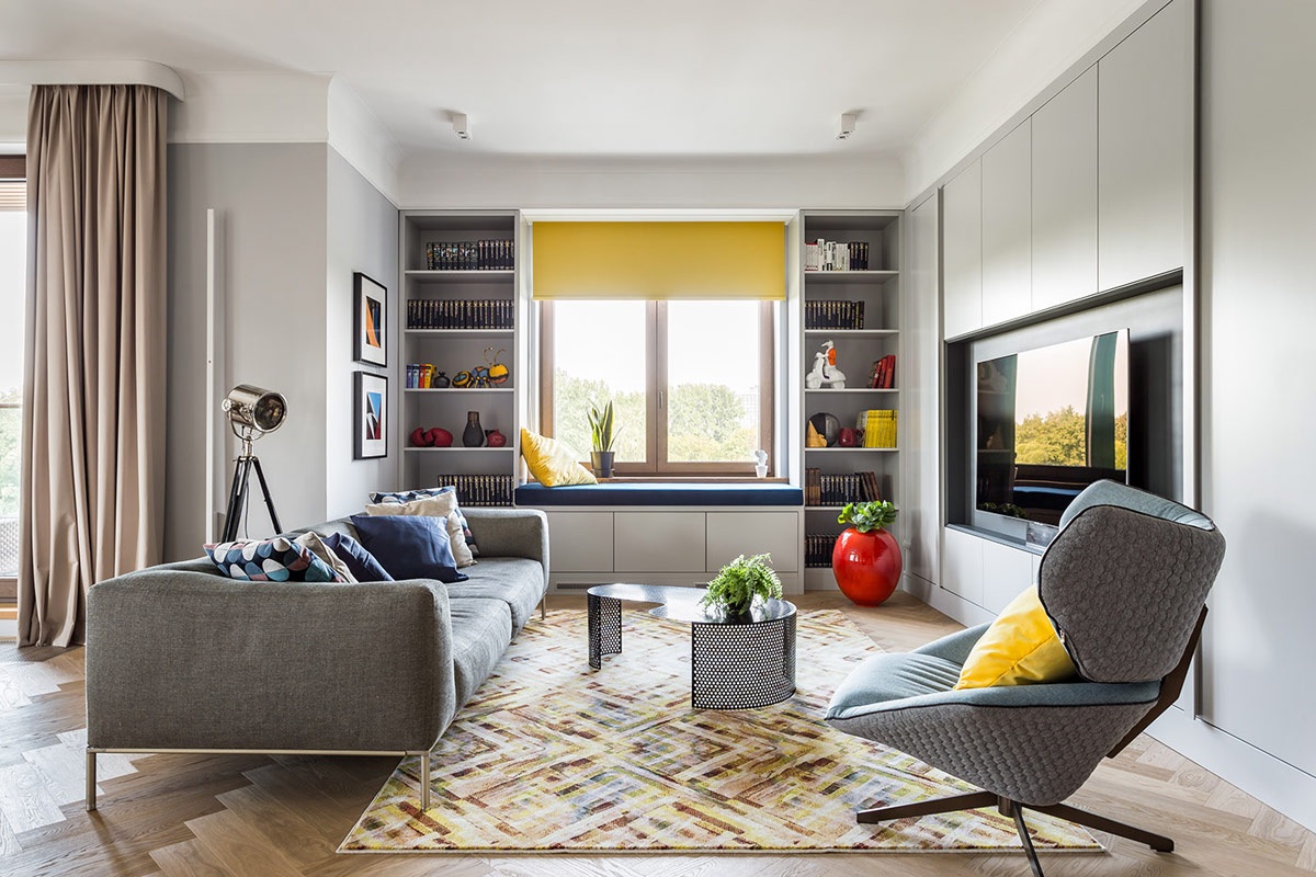 Igazán vidám lakás: játék a szürke, a kék és a sárga színekkel
