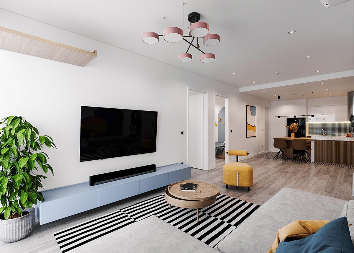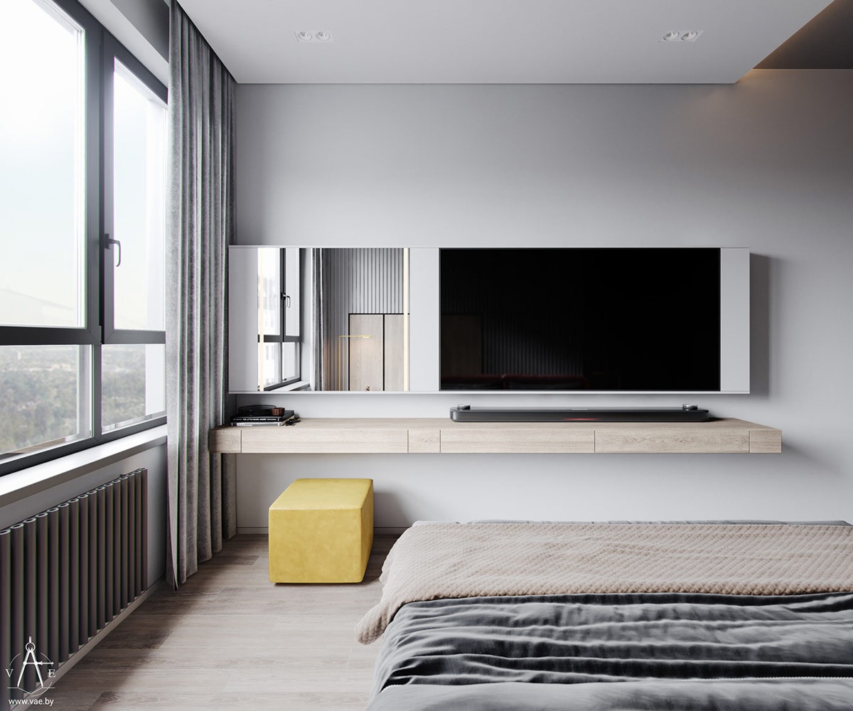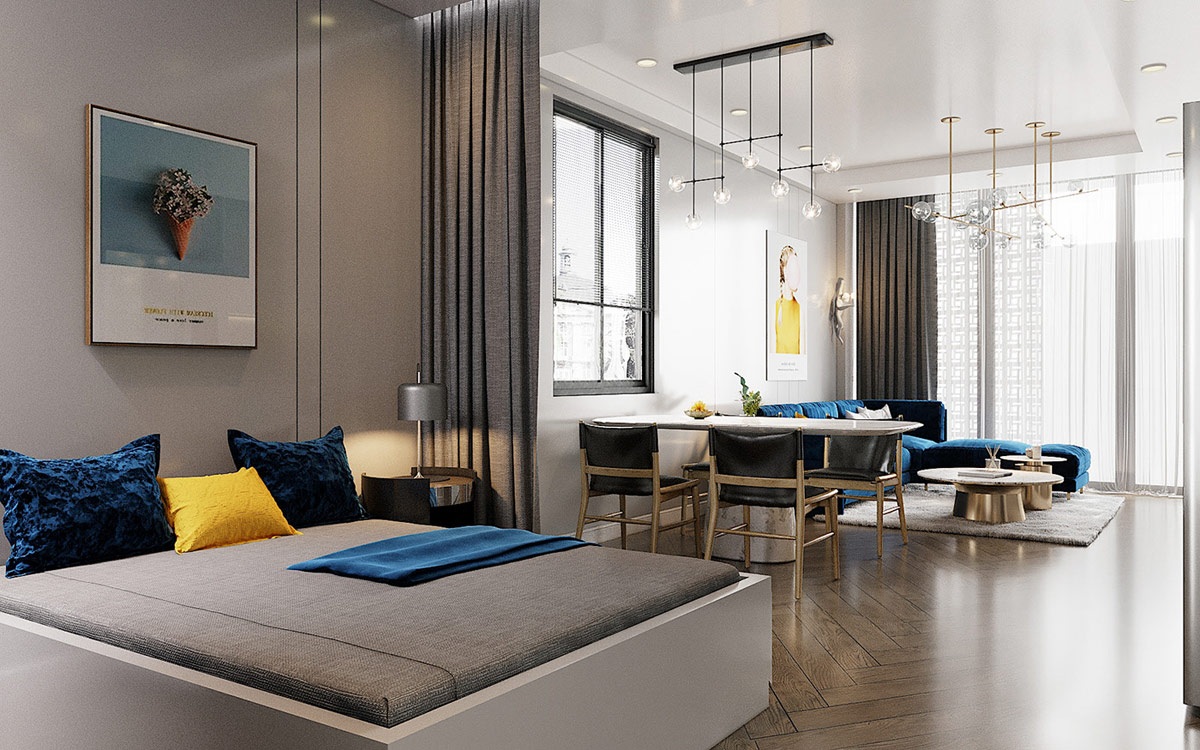 Igazán vidám lakás: játék a szürke, a kék és a sárga színekkel