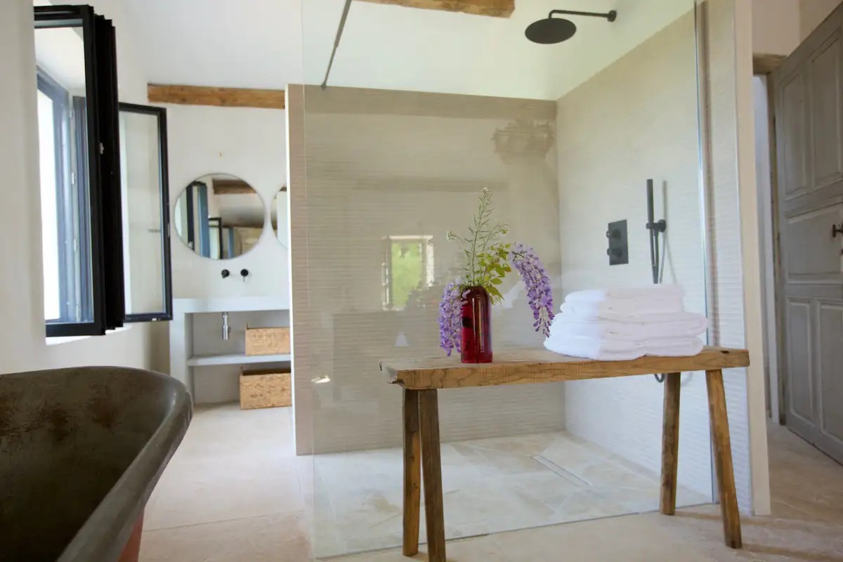 Ez a nagy, nyaraló St Rémy de Provence-ban gyönyörű neo rusztikus dekorációt kapott, amely ötvözi a hagyomány ihlette elemeket a kortárs formatervezéssel a régi falakon belül. Modern hálószobák és üvegfalas fürdőszoba biztositja a kényelmet a lakóknank. A boltíves mennyezet, a fa burkolatok, az ablakok és a medencés uszoda gyönyörű tisztelgés a falusi hagyományok iránt.
