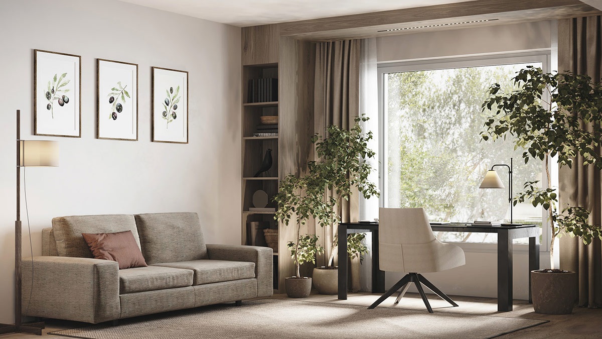 A barna és szürke dekoráció puhaságot, melegséget áraszt a belső terekben