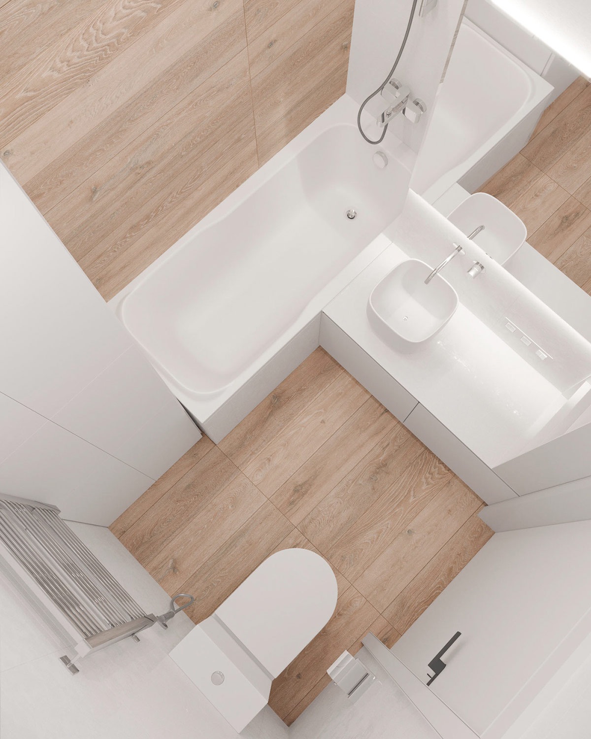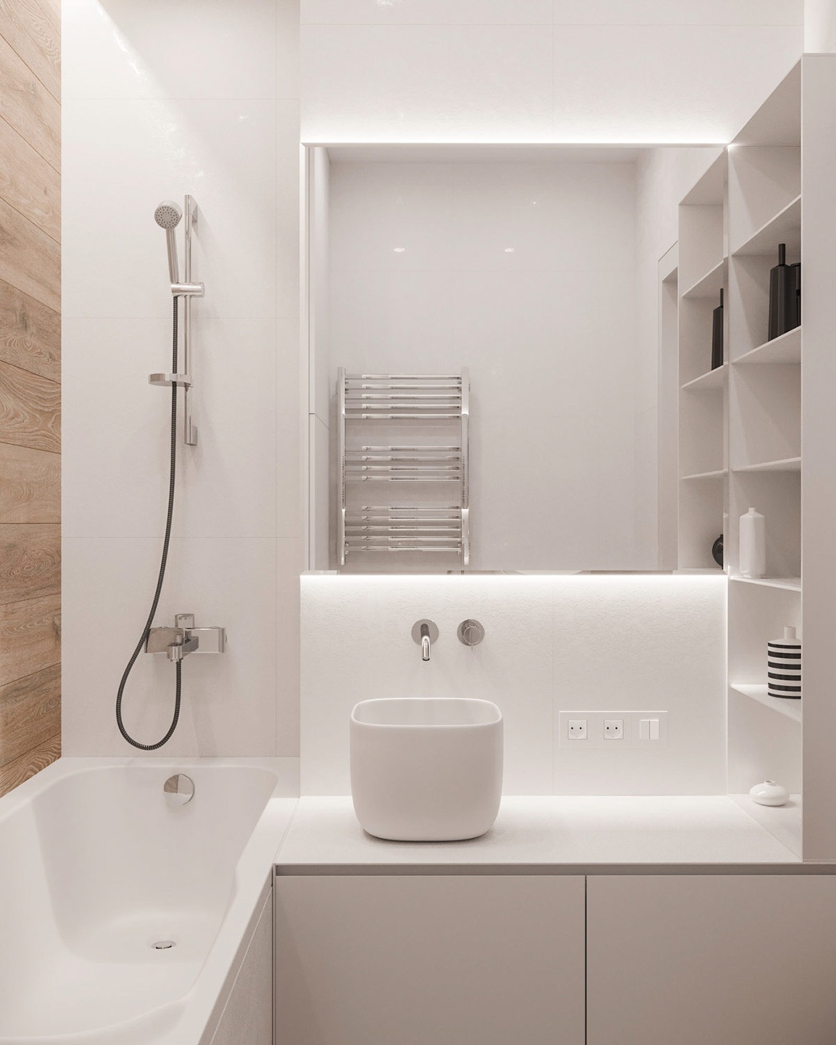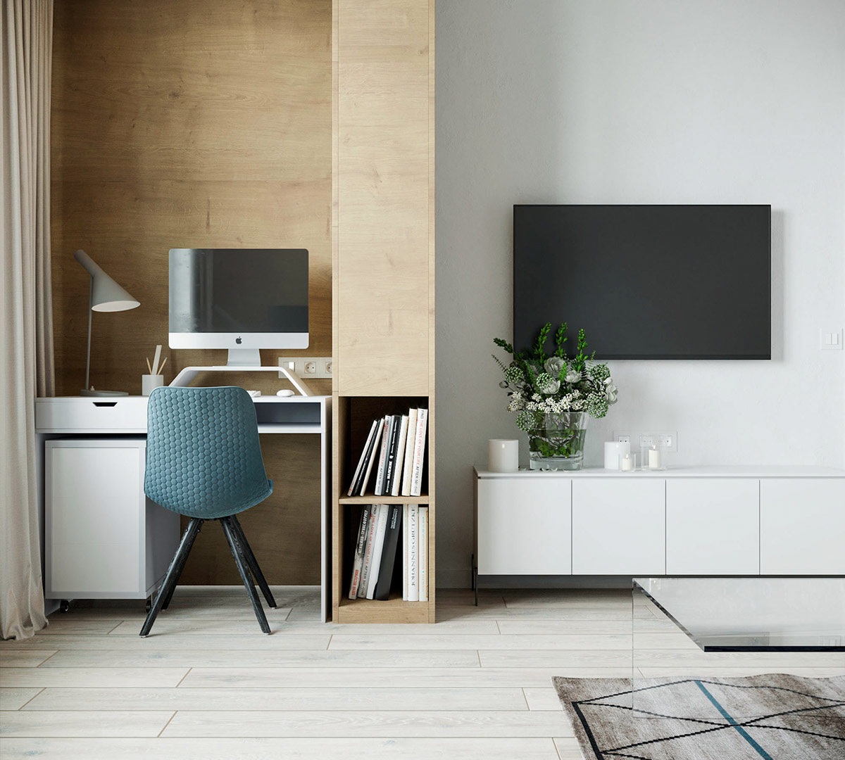 A harmadik lakás is Ukrajnában, Kijevben található. Mindössze 38 négyzetméteres, vidám kék színeket alkalmaz, ezzel tágítja a teret, egyben megtöri az egyhangú szürke, fehér és fa tónust.