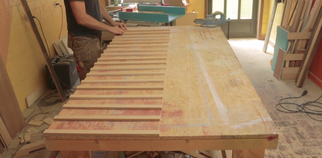 - kb. 40 db, 3 cm x 3 cm vastag keményfa hasábok (bármilyen fából) vagy kb. 3 m széles falap, amit feldarabolhatunk