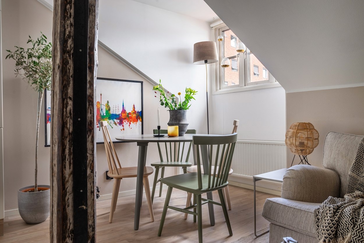 Tökéletes példáját láthatjuk a tetőtér optimális helykihasználására. A szerényebb méretű lakásokban használt egyszerű és letisztult stílus megteremti a rendet és az átláthatóságot. Az élénk kiegészítő színek pedig élettel töltik meg otthonunkat, könnyedén egyedivé varázsolhatjuk a legkisebb teret is.