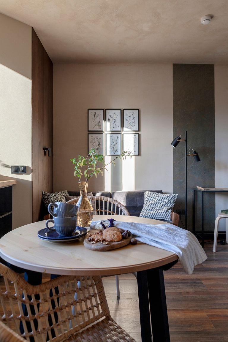 Ez a szentpétervári kis lakás mindössze 30 m2 alapterületű, mégis ugyanolyan rendezett és kiegyensúlyozott belülről mint egy tágas villa. A berendezéskor használt tárgyak meleg barna színe és a falak vanília árnyalatai tökéletes megjelenést nyújtanak, mint a legfinomabb café latte. A kis lakásnak a tejeskávé elnevezést Sveta Melnikova belsőépítész adta. A képek békességet, nyugodt és barátságos légkört árasztanak felénk. Bárki nagyon szívesen elfogadna egy café latte stílusú lakáskát Budapesten is!