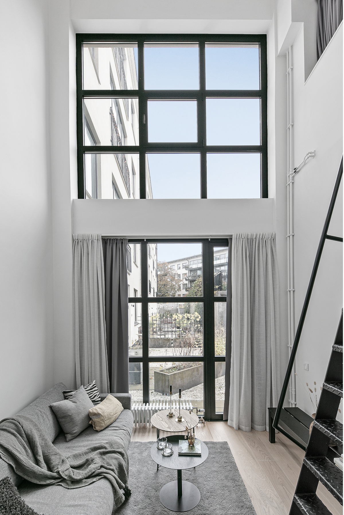 Ez a kis svéd lakás 6,60 méteres belmagassággal rendelkezik. Egy 1939-ben épült épületben található, és teljesen felújították, fekete-fehér színvilága egyszerűen lenyűgöző.