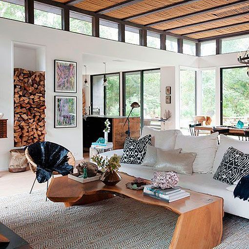 A ház 1969-ben épült, és Long Island, New York partjain fekszik. A tulajdonosok a ház berendezésénél a ház korosságát úgy kívánták visszaadni, hogy meghagyták az eredeti fa gerendákat, burkolatokat és ezt rusztikus és vintage stílusú bútorokkal és egyéb tárgyakkal egészítették ki. Az eredmény lenyűgöző és magával ragadó. Külön felhívnám a figyelmet az ebédlőasztal felett lógó impozáns csillárra, és a már-már ipari stílusjegyeket ötvöző rusztikus faburkolatú konyára.