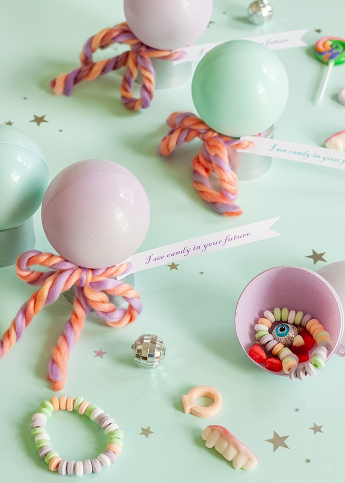 Ezek a kristálygömbök tökéletes ajándékok egy gyerekbulira, de akár ültetőkártyaként is használhatók. Megtöltheted őket cukorkával, apró meglepetésekkel és jövendölésekkel.