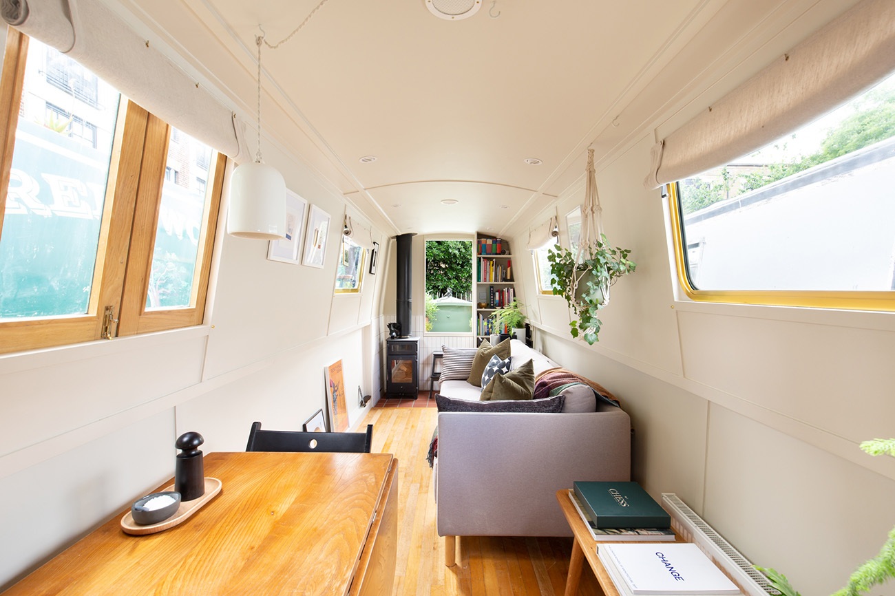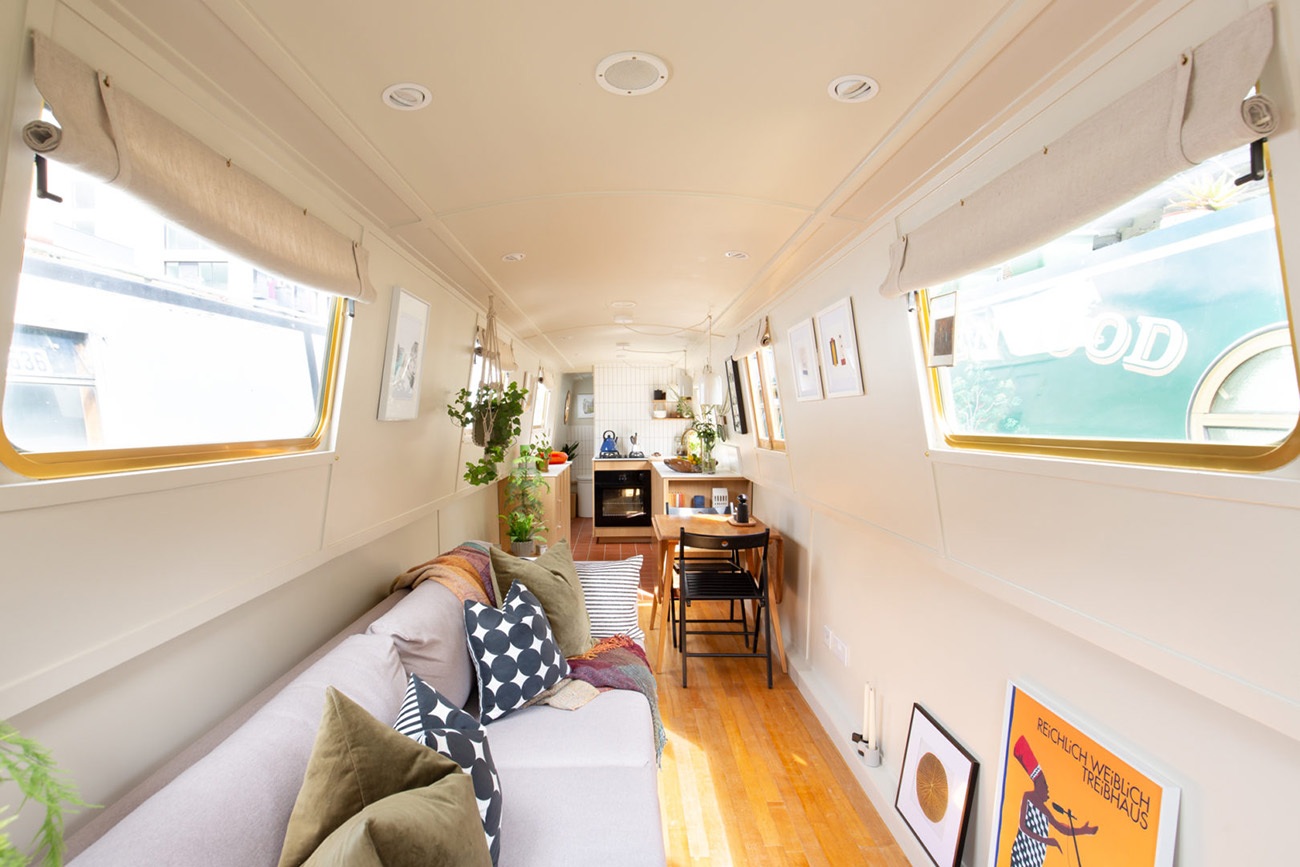 Az Olive nevű kis lakóhajó tervezői úgy alakították ki úszó otthonunkat, hogy bőséges tárolóhellyel rendelkezzen, miközben a belső tér letisztult és rendezett maradjon. A belső tér kialakításához semleges tónusú színpalettát használtak, így kortárs, mégis időtálló hangulatot teremtettek, amely tökéletes összhangban van a folyóparti környezettel. Bár kisméretű, a lakóhajóban található egy nappali konyhasarokkal, valamint egy hangulatos hálószoba. A mindennapok része a szabadtéri élet is, amikor az időjárás engedi. A bejárat előtti kis terasz közvetlenül a víz felett helyezkedik el, ideális hely egy ital elfogyasztására vagy a jó idő élvezetére. A fűtést egy kis kályha biztosítja, ami tökéletesen elegendő ehhez a jól szigetelt, kis alapterületű otthonhoz. A belső tér, amelyet tizenegy ablak világít meg, rendkívül világos és kellemes. Ez a különleges, nem mindennapi lakhatási forma vonzó lehet mindazok számára, akik szeretik a városi életet, de nem vágynak a megszokott megoldásokra.