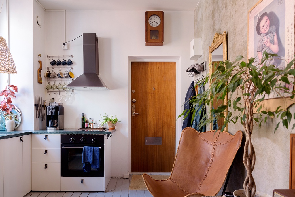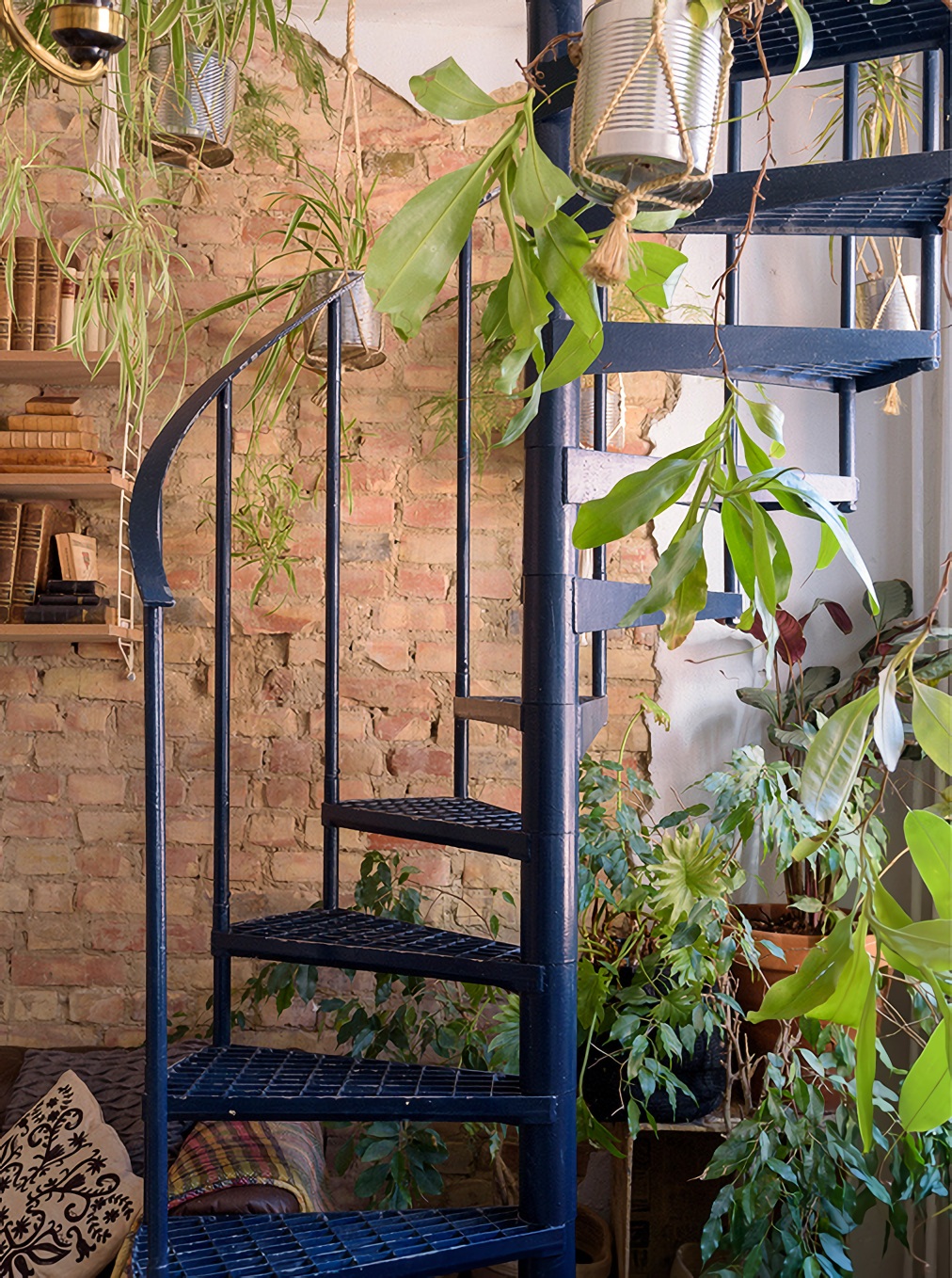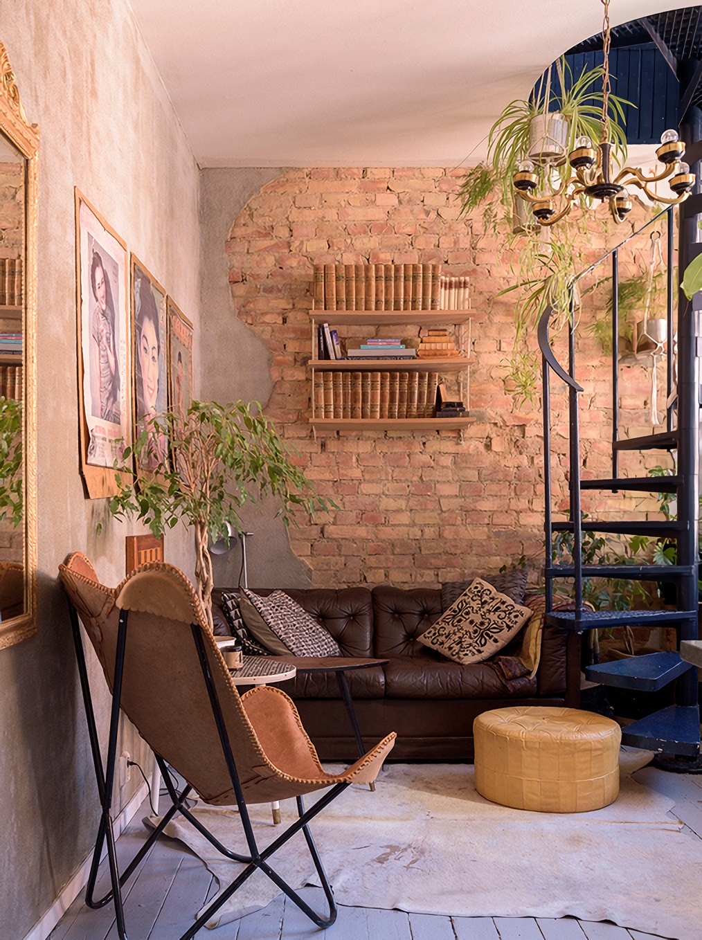 A 29 nm-es, egy hálószobás duplex lakásnak jól illik a boho stílusa az épület patinájához. A kis lakás egy téglaépítésű házban található, a maga 5,60 méter magas belmagasságával elegendő lehetőséget adva egy kis duplex kialakításához. A terek jól szervezettek, a nappali és a konyha a földszinten, míg a hálószoba és a fürdőszoba az emeleten található, amely egy gyönyörű, sötétkék öntöttvas lépcsőn keresztül érhető el. A konyha nagy méretű az apró területhez képest, és számos szép részlet található benne. A nyers téglafalat szépen megvilágítja a természetes fény, ami a lakásból oázist varázsoló szobanövényeknek is elegendő világosságot nyújt.