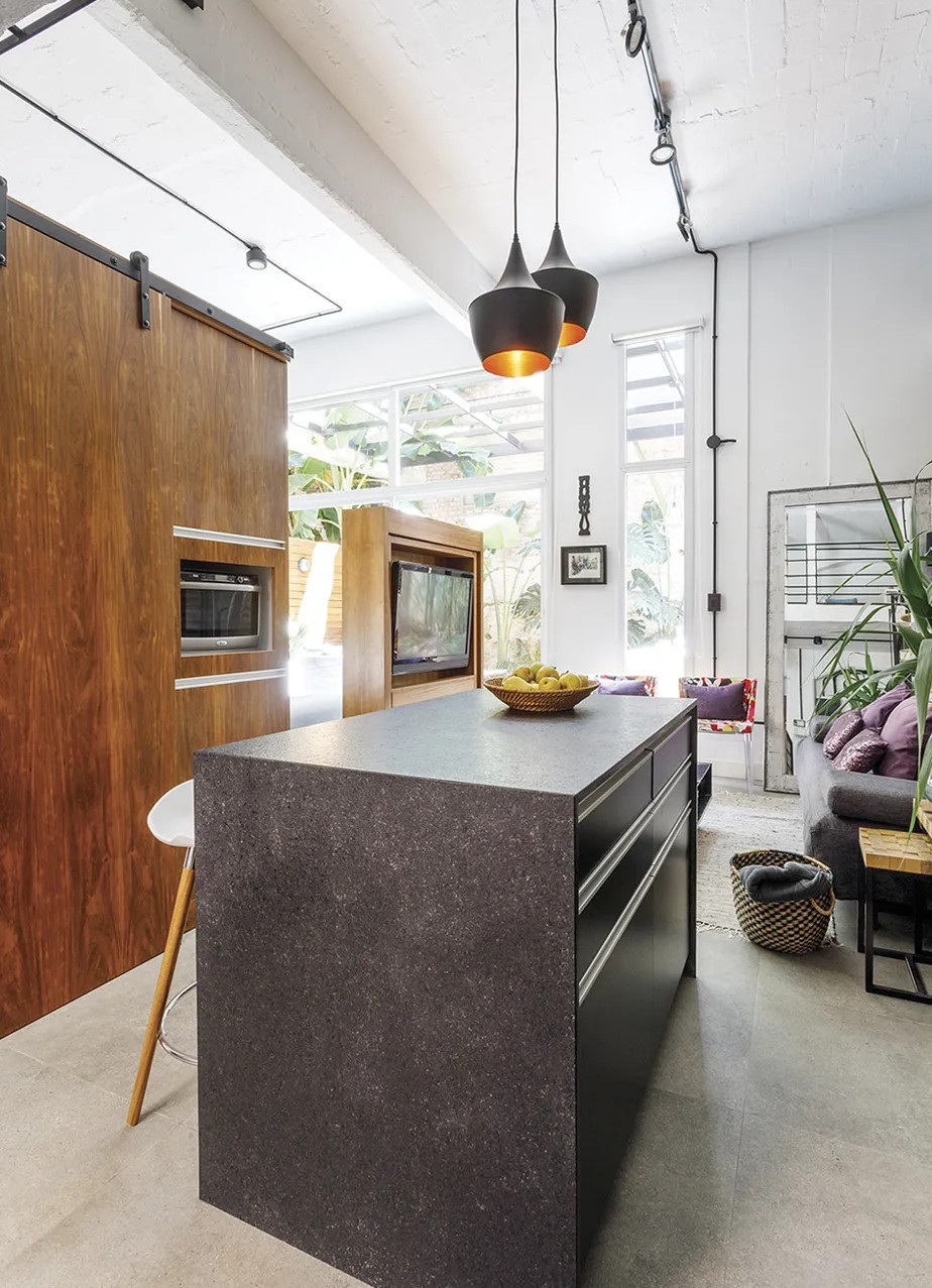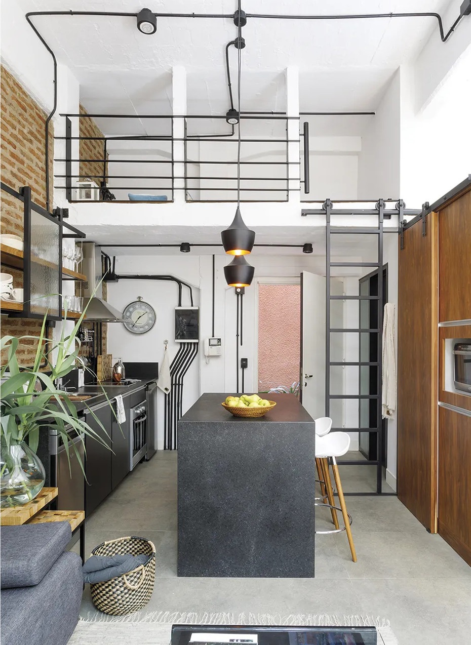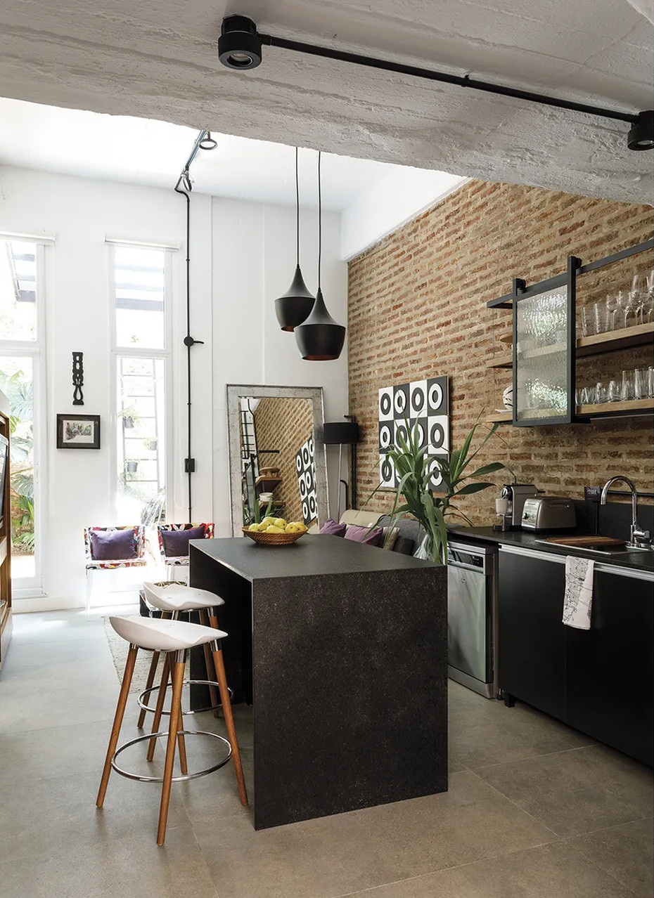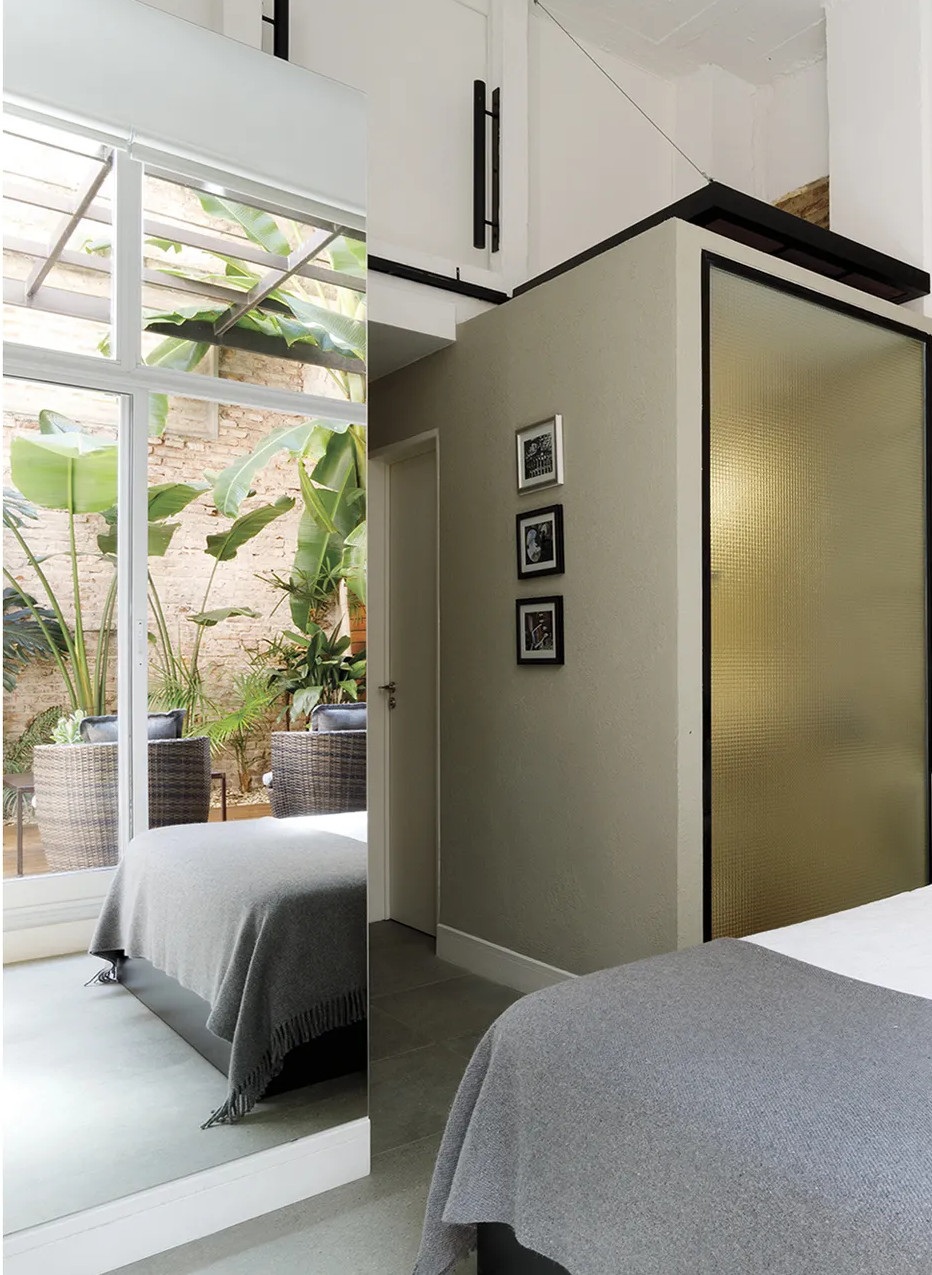 Ennek a 65 négyzetméteres lakásnak a legfontosabb eleme kétségtelenül az intimitást nyújtó 25 négyzetméteres belső udvara, amiből már semmi sem emlékeztet az egykori elhagyatott kertre. Az argentin lakás egy régebben gyárként üzemelő épületben található, emiatt a loft stílus jegyeire hangolták a belső tereket. A felújítás során megőrizték a téglafalakat és a nagy nyitott tereket. A kis loft lakás legérdekesebb eleme a méretre készített és 360 fokban elforgatható televíziós szekrény, ami elválasztóként szolgál a nappali és a hálószoba között.