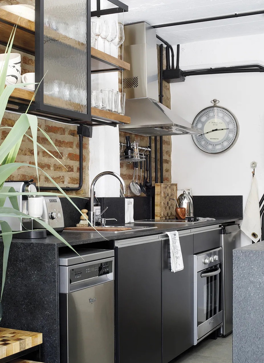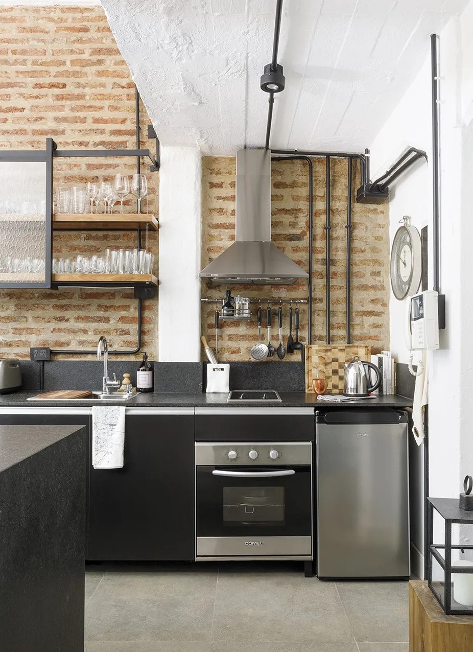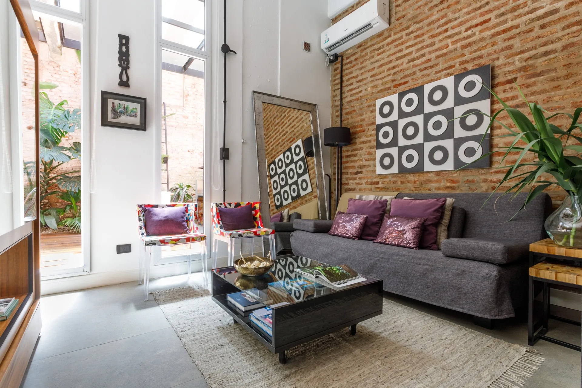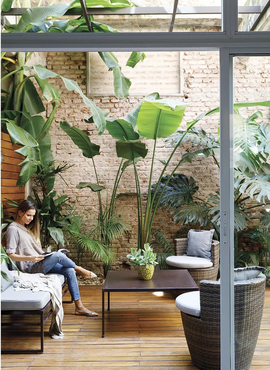 Ennek a 65 négyzetméteres lakásnak a legfontosabb eleme kétségtelenül az intimitást nyújtó 25 négyzetméteres belső udvara, amiből már semmi sem emlékeztet az egykori elhagyatott kertre. Az argentin lakás egy régebben gyárként üzemelő épületben található, emiatt a loft stílus jegyeire hangolták a belső tereket. A felújítás során megőrizték a téglafalakat és a nagy nyitott tereket. A kis loft lakás legérdekesebb eleme a méretre készített és 360 fokban elforgatható televíziós szekrény, ami elválasztóként szolgál a nappali és a hálószoba között.