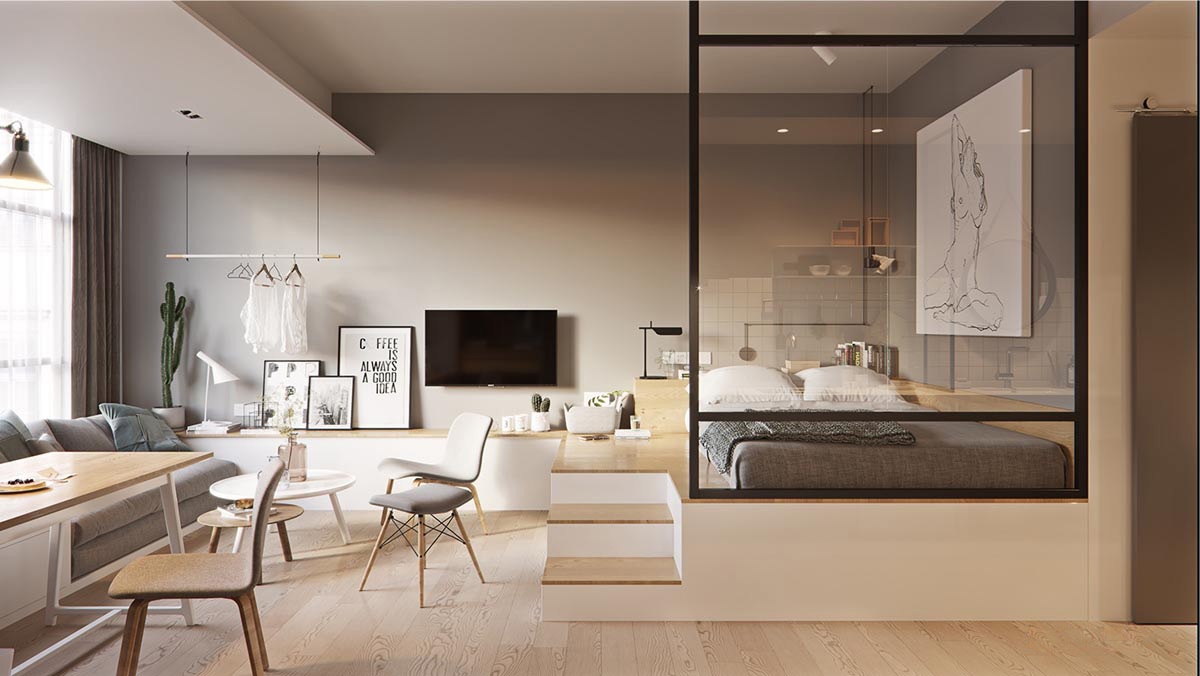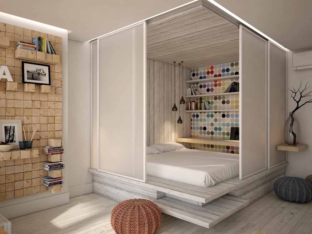 A hálószoba kialakítása egy kis alapterületű lakásban ugyan nem lehetetlen feladat, de sok buktatót rejt magában. Az egyterű stúdiólakásoknál például kézenfekvőnek tűnik egy fallal leválasztott kis kuckó, azonban ilyenkor érdemes úgy tájolni a leválasztást, hogy valahonnan fény juthasson be az ablak nélküli szobába. Ugyancsak jó megoldás lehet egy galérián elhelyezett háló, ha megvan hozzá a kellő belmagasság. Az alábbi galériában összegyűjtöttünk néhány inspiráló ötletet az apró hálószoba kialakításához.
