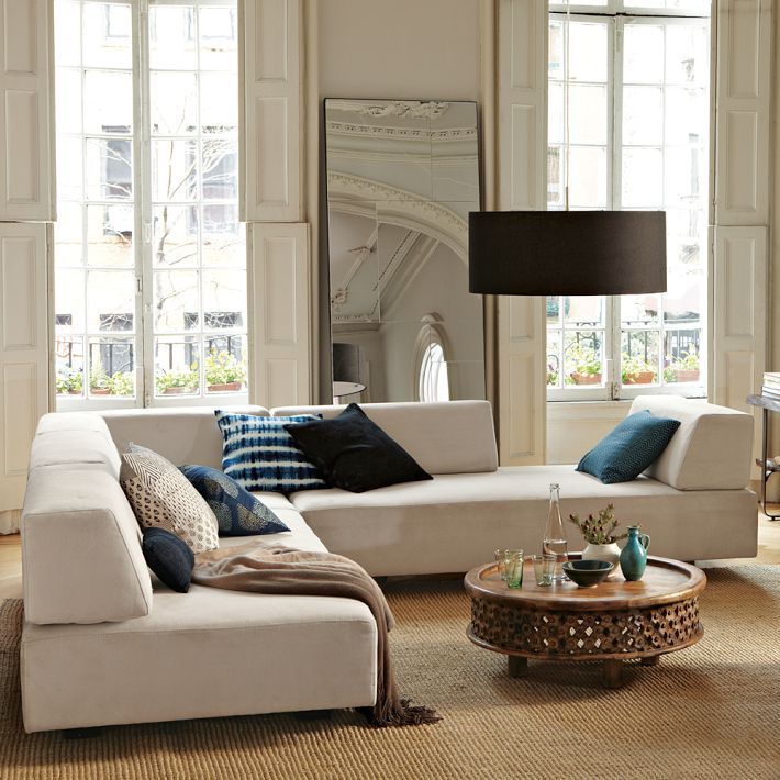 Ez a megoldás főként olyan nappalikban működik, melyek jó nagyok és tágasak, így egyáltalán nem mutat rosszul a kanapé a szoba közepén. Az így fennmaradó teret is ki lehet használni, például lehet belőle olvasósarok.