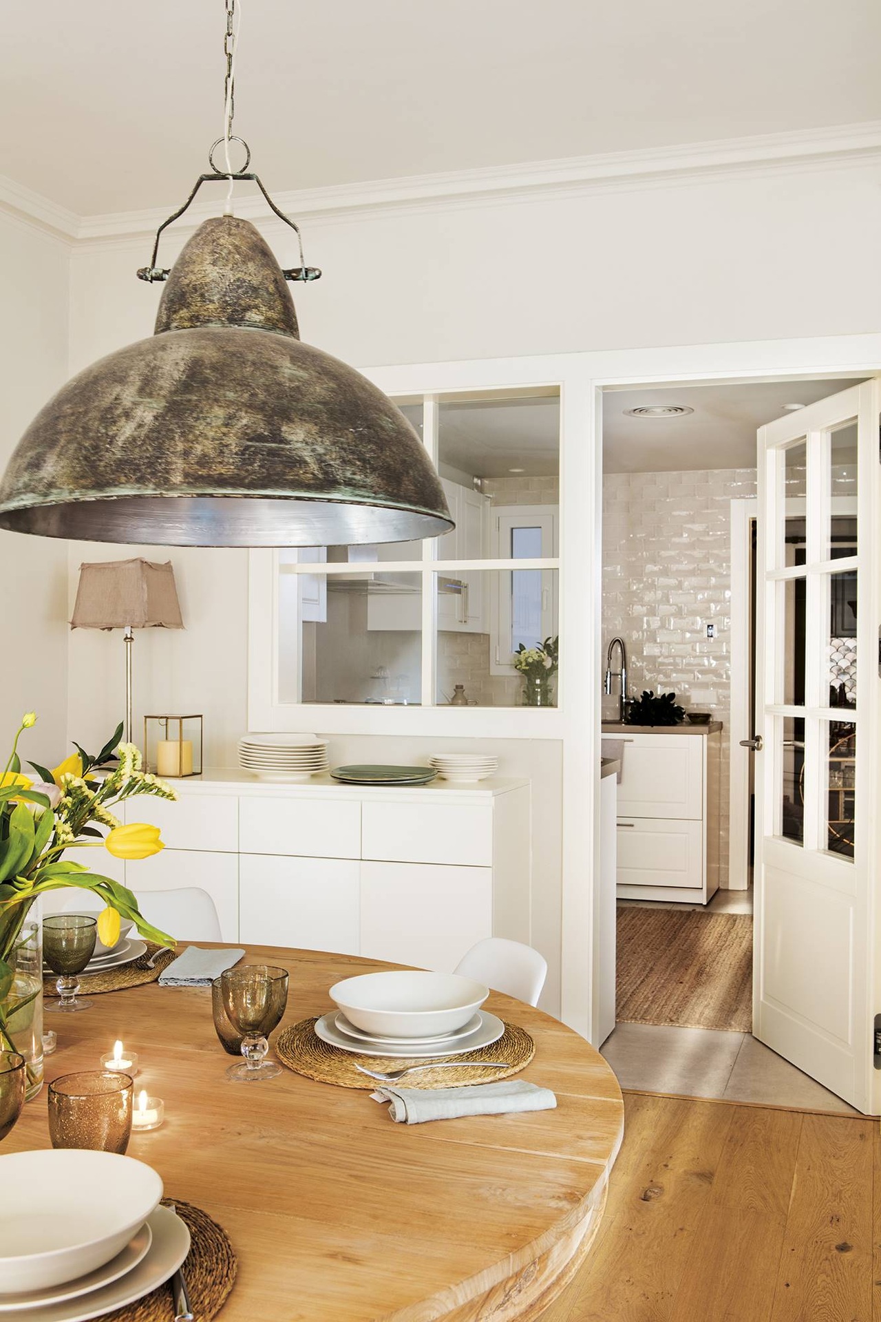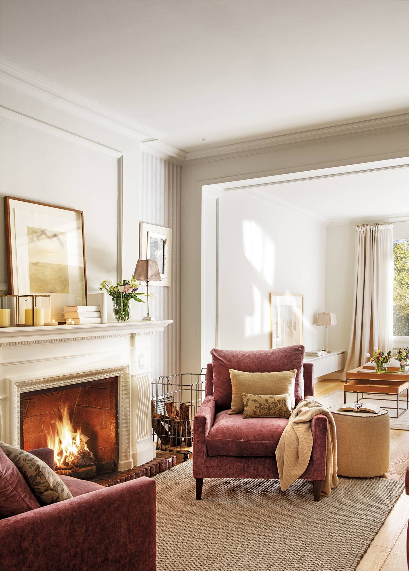 Hogy a kívánt otthonos hangulatot megteremtsék, bátran keverték a stílusokat: a kandalló és a bársonyfotelek a klasszikus otthonok elemei, a természetes, natúr anyagok és formák a modern, skandináv vonalat képviselik, de szép számmal akadnak indusztriális elemek is, mint a hatalmas ipari lámpa az étkezőasztal felett. Ebben a gondosan elegyített kavalkádban épp a kellő arányban vannak jelen a mai, modern bútorok, mint a tálalószekrény vagy a háló gardróbja, amelyek a fehér falakkal és a világos padlóval együtt egyensúlyt teremtnek a többféle, igen eltérő irányzat között. Ariadnáék otthona végül olyan jól sikerült, hogy minden vendégük azzal zárja a látogatást: én inkább itt maradok, ti menjetek az én lakásomba!