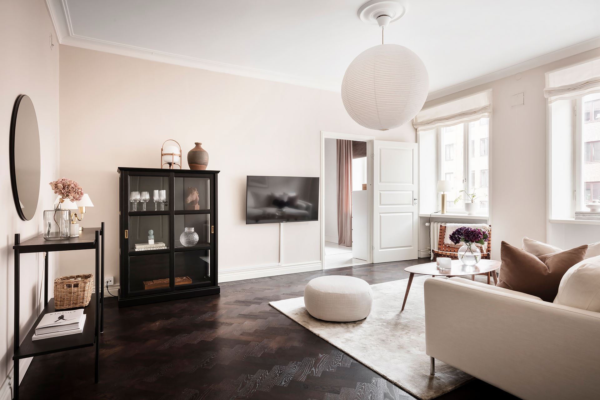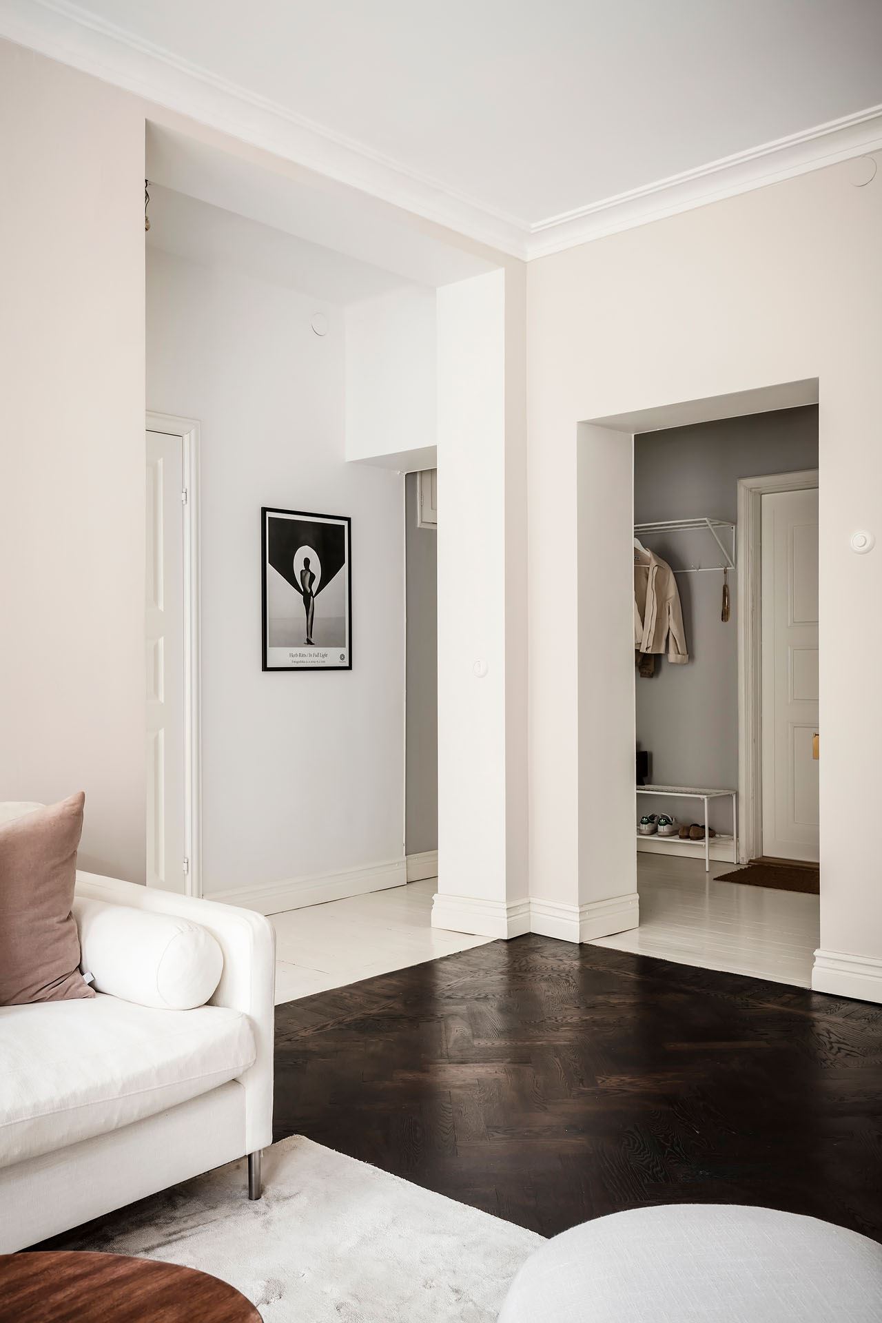 Egy 1927-ben épült társasházban került felújításra ez a kétszobás lakás, ami eladási céllal kapott teljesen új külsőt. A világos falakat jól ellensúlyozza a sötétbarna parketta, mely melegséget ad a nappalinak. A lakás többi helyiségében megjelenő világos parketta pedig légiességet kölcsönöz a szobáknak, illetve optikailag tovább tágítja a teret. A lakás nagy múltra tekint vissza, ez pedig néhol visszaköszön a régi típusú nyílászárókon, radiátorokon, vagy a konyhában található gázcsöveken. Ezeket a tulajdonságokat azonban nem akarták elrejteni, hanem a berendezés szerves részeként kezelték, kiegészítve a mai kor lakberendezési stíluselemeivel.