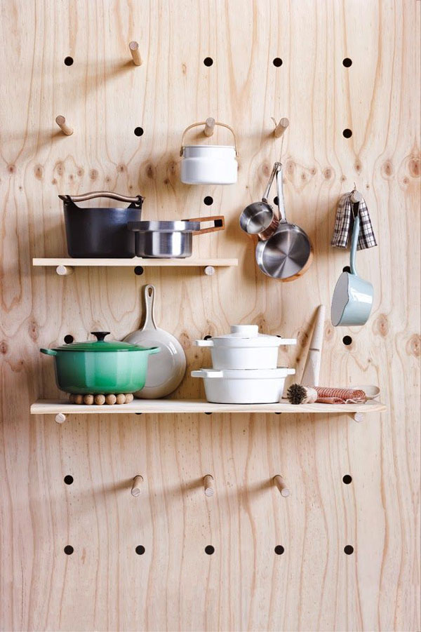 Az ötlet nagyon eredeti és emellett egy rendkívül praktikus tárolási és rendszerezési forma is. Ez tipikusan egy olyan DIY projekt, amit ha nem látunk, nem tudunk elképzelni. Nos, íme, itt vannak a képek, melyek magukért beszélnek. A lyukas lemezeket bármilyen barkácsboltban könnyen be tudjuk szerezni. Nem csak a falra rögzített verziót éri meg kipróbálni, hanem dizájn szempontjából különböző bútorokon is jól mutathat.