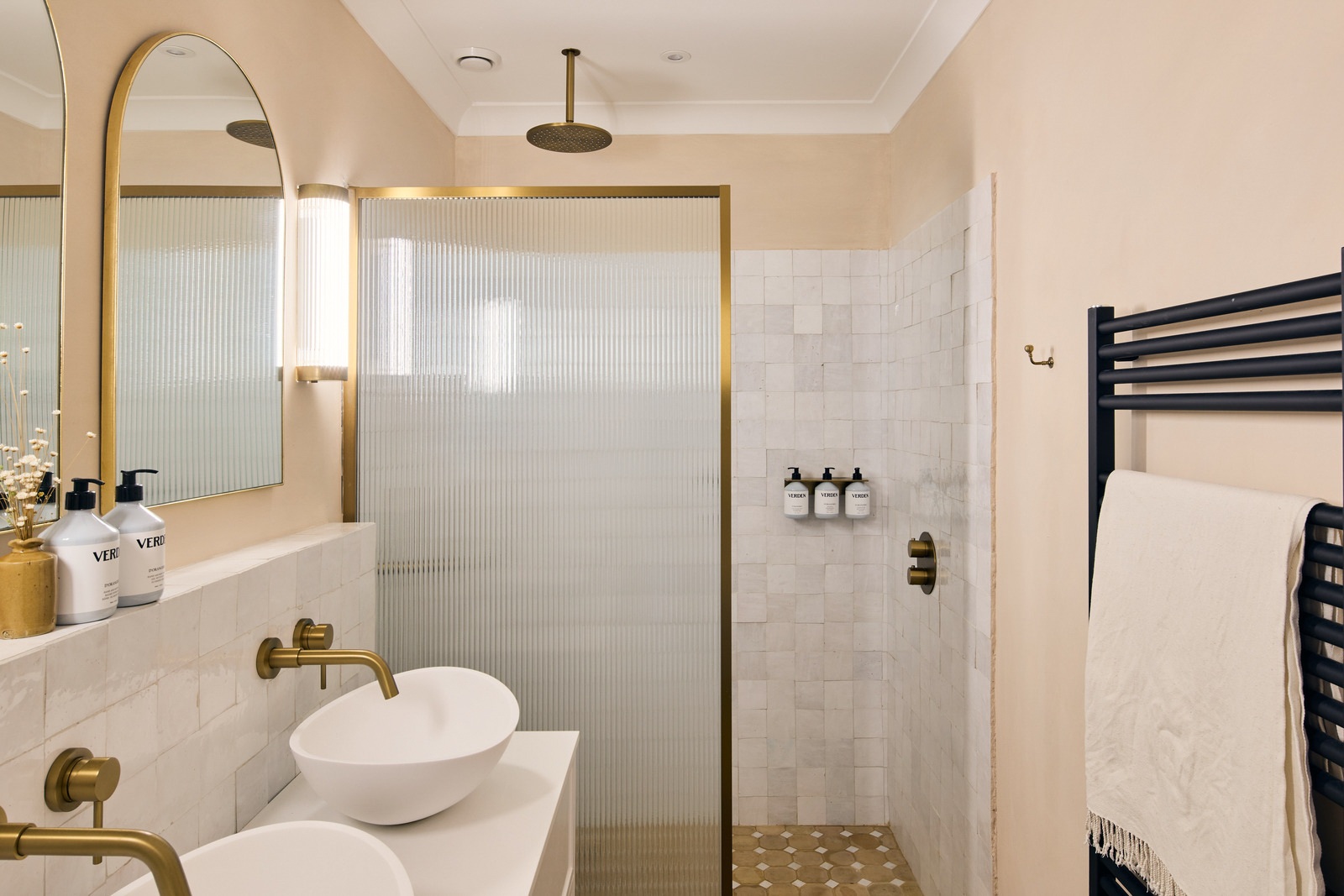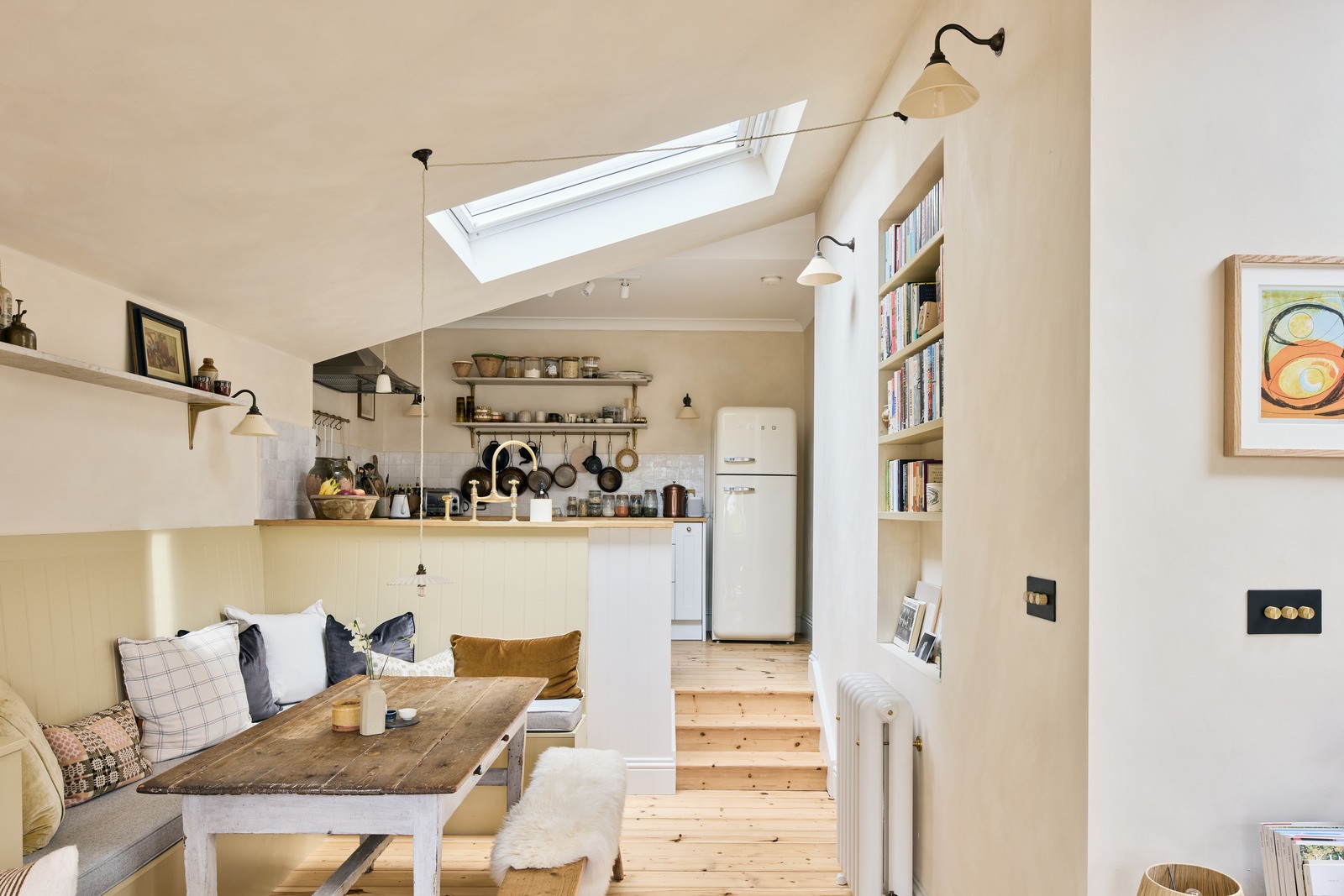 A régies, ám kopott keményfa hajópadlót megőrizték, de felcsiszolták és selyemfényű lakkal felújították. A bejárati ajtó ólomüveg ablaka megerősítést és alapos takarítást kapott, az ajtót újra festették. A falakra mészfesték került fehér, illetve bézs színben. A hidegburkolatokat bontott mészkőlapokra cserélték. A falikarok egy régi iskolaépület felújításból lettek megmentve, ahogy az ódon öntöttvas radiátorok is. A bútorok zöme a bolháról vagy használt bútorokat árusító oldalakról gyűlt, korszerűsítésüket a tulajdonosok maguk, illetve egy ügyeskezű asztalos és kárpitos végezték.
