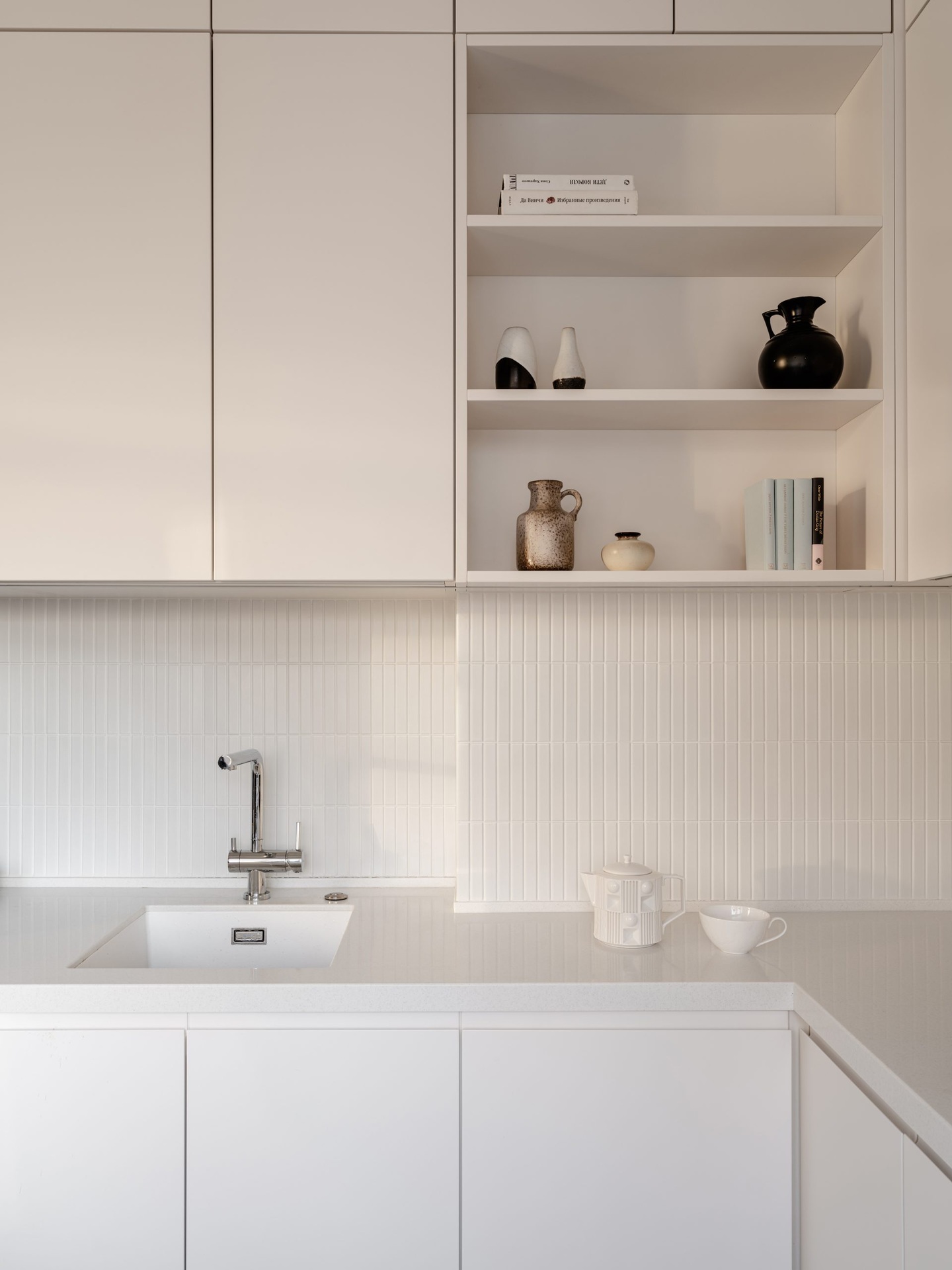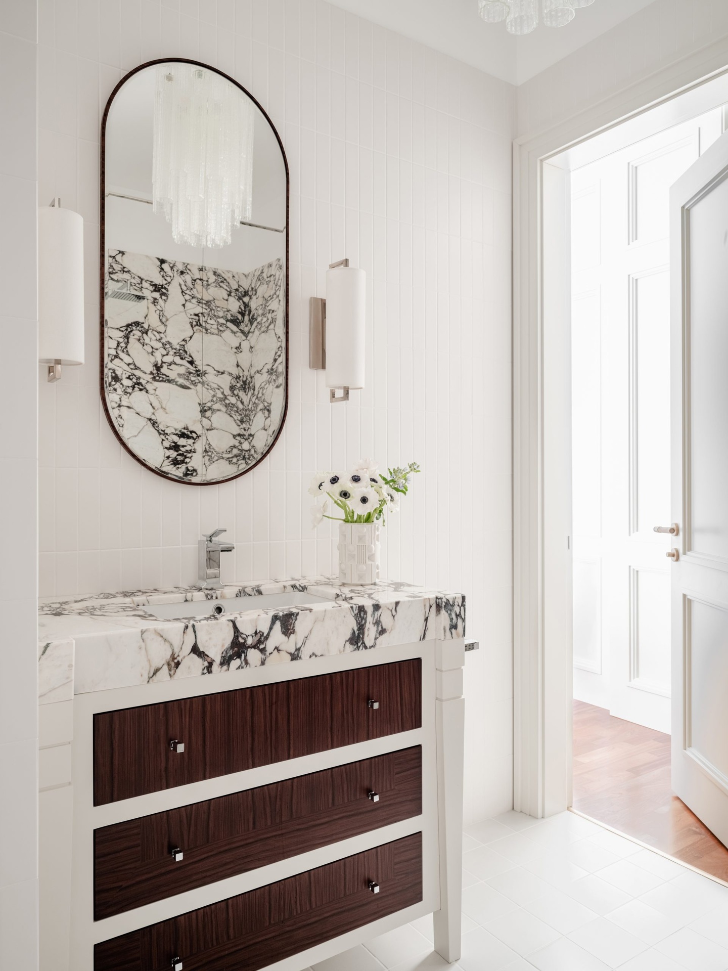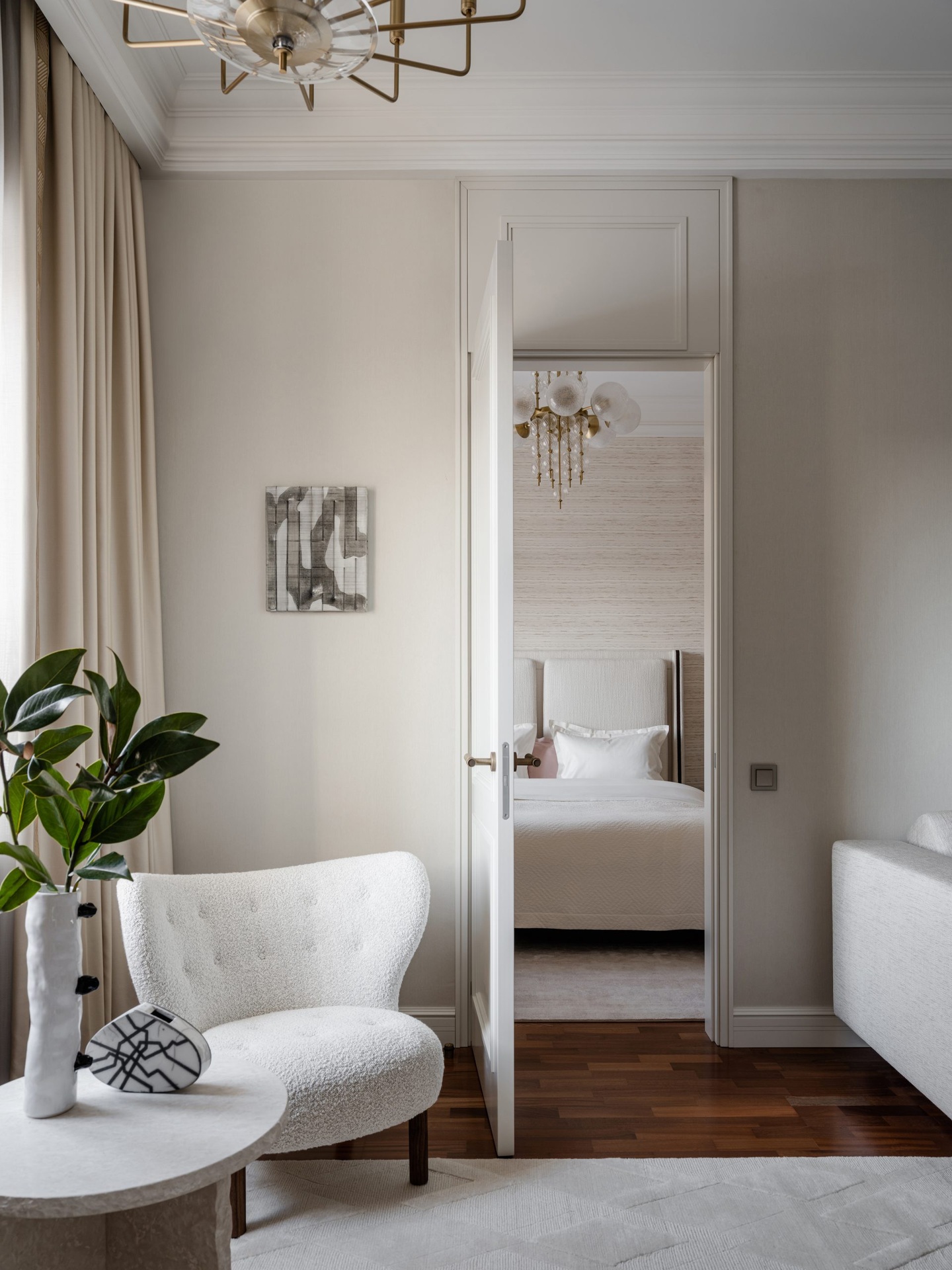 Márvány, lakk és fa – ezek a luxus anyagok díszítik ezt a világos, 75 m²-es lakást, amelynek dekorációja figyelemfelkeltő. Bár a lakás klasszikus elrendezéssel és alapokkal rendelkezik, mivel egy régi, történelmi épületben található, a felkért belsőépítészek teljesen kortárs stílusban újították fel. A lakást egy fiatal pár számára tervezték, akiknek nem voltak konkrét elképzeléseik arról, mit szeretnének, kivéve, hogy a helynek modernnek és kényelmesnek kellett lennie. Végül az olyan klasszikus lakások mintájára alakították ki, mint amilyenek Londonban és Párizsban találhatók. Mivel a falak elbontására nem volt lehetőség, ezért az eredeti elrendezést megtartották, miközben olyan dekorációval gazdagították, amely jobban illik az 1940-ben épült ház korához, de egyben időtlen is.