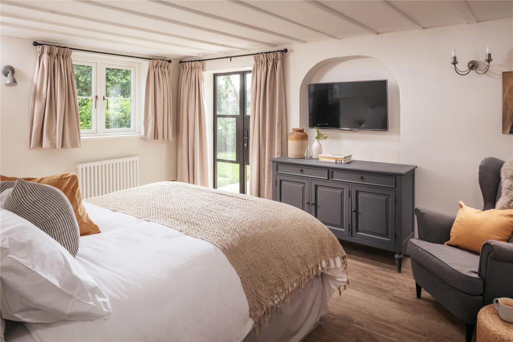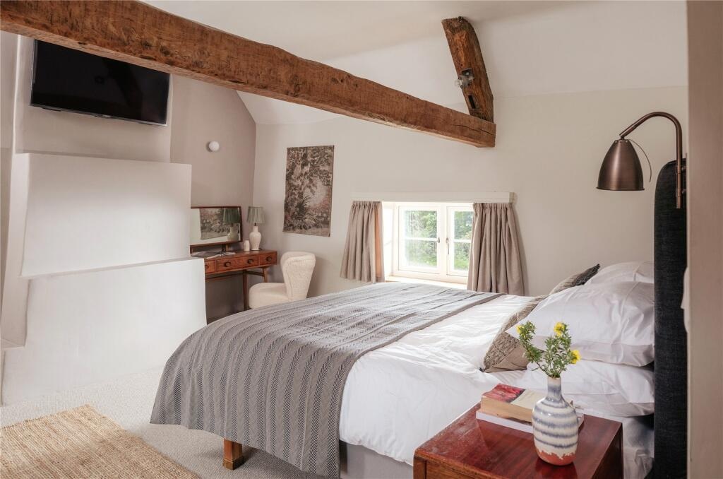 Míg a nappali a múlt idők hangulatát idézi, kőfalakkal, kandallóval és gerendákkal, addig a konyha és az étkező sokkal modernebb. A két hálószobát kellemes, rusztikus-chic stílusban rendezték be. A hatalmas tolóajtókat nyáron kinyítják, hogy a hangulatus grillezéseknek helyet adó terasz könnyebben megközelíthető legyen. A téli időszakban pedig csodás látványt nyújt a havas táj, amit a nappali minden szegletéből élvezhetünk. A háznak melléképületei is vannak, beleértve egy irodát, ahol a tulajdnosok nyugodtan végezhetik a távmunkájukat.