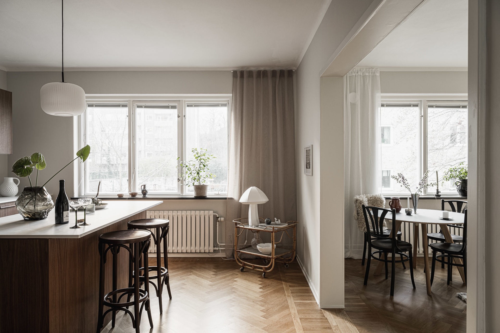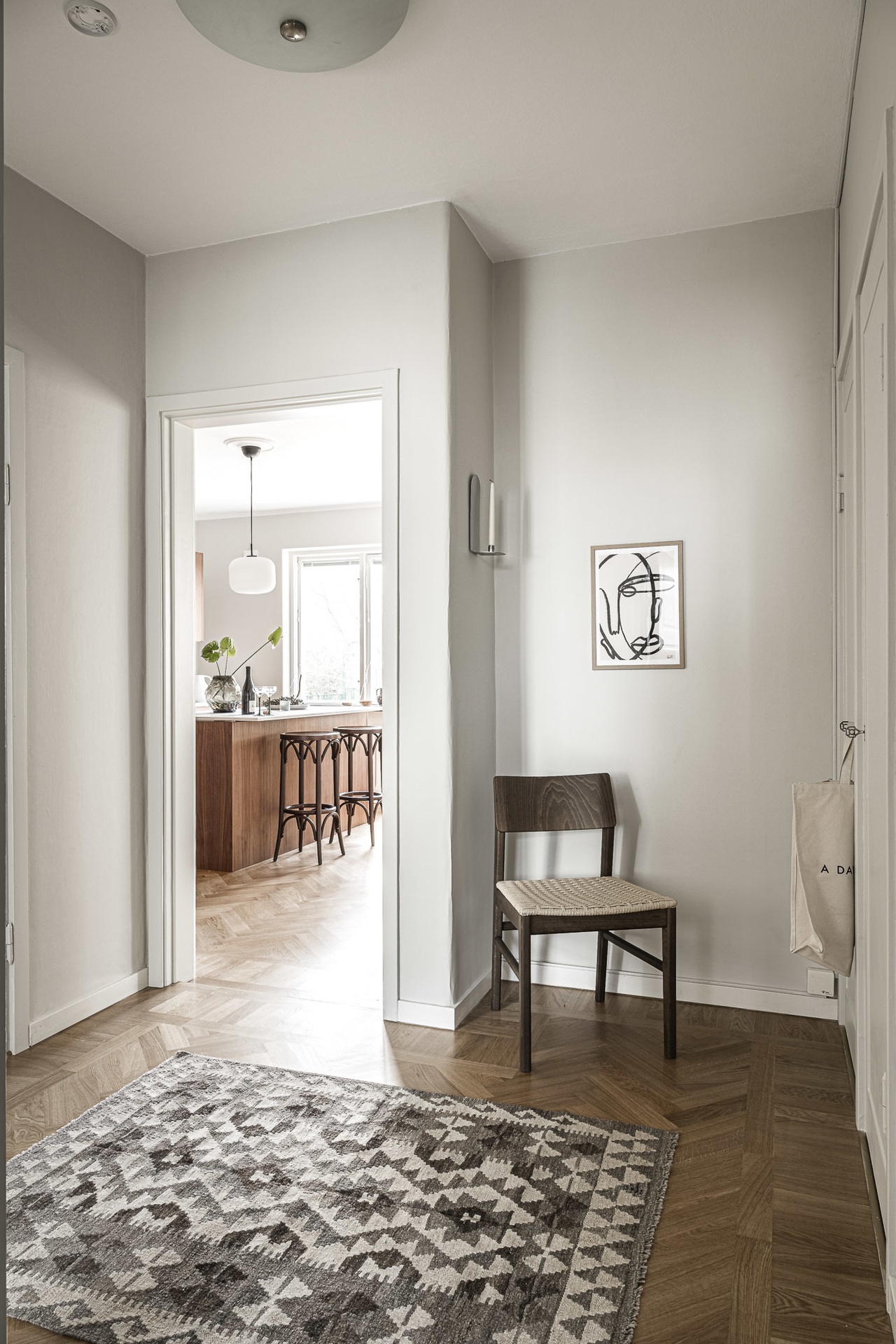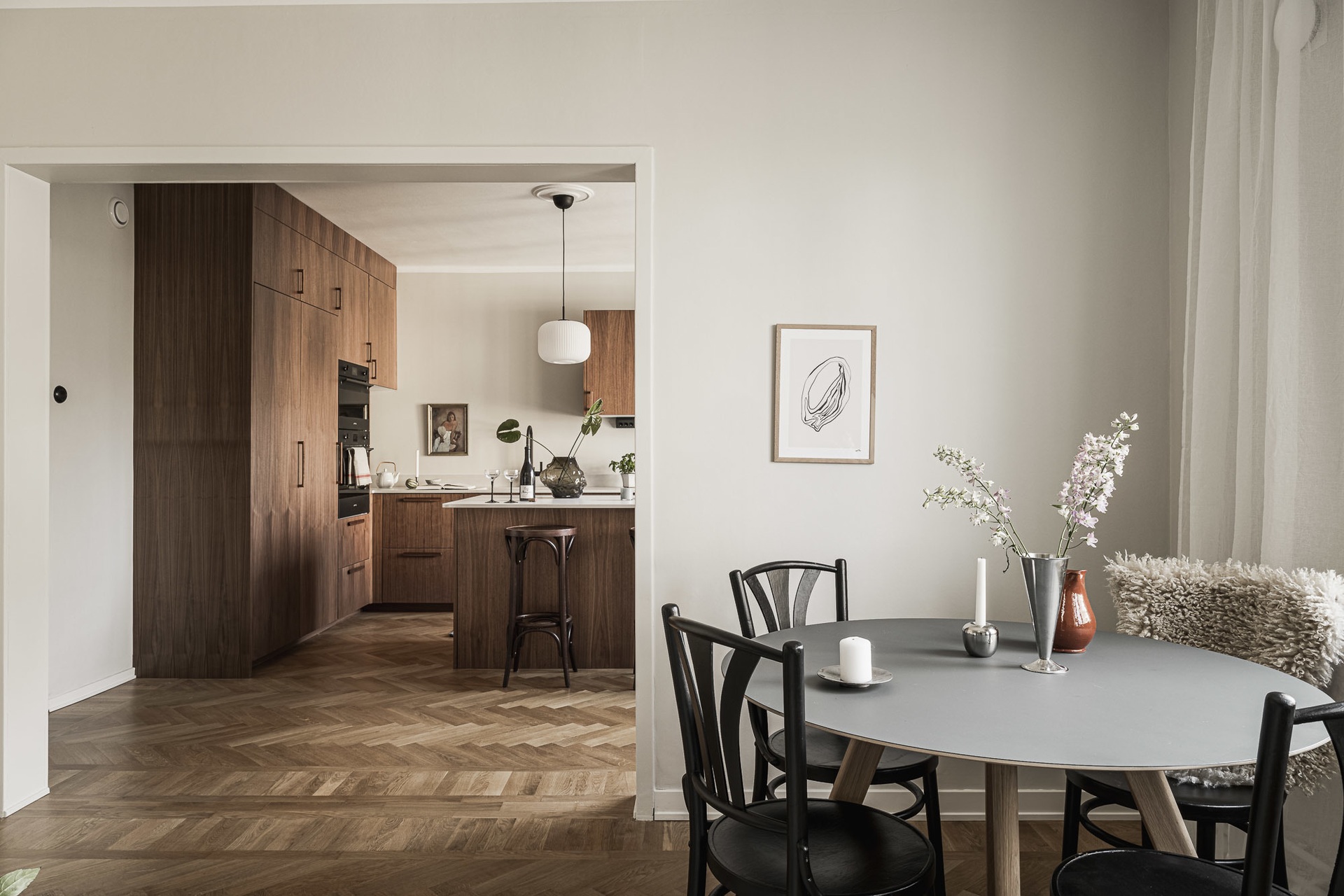 Ennek az 54 m²-es lakásnak a legszembetűnőbb jellemzője a dekoráció következetessége. A semleges tónusok minden szobában végigvonulnak a fehértől a barnáig, anélkül, hogy más szín megzavarná ezt a tökéletes egyensúlyt. A közelmúltban felújított lakás egy régi épület tetején található. Látni, hogy minden részletet gondosan átgondoltak, a félig nyitott, dió színű konyhától kezdve a világos nappaliig, ahol az alapvető dolgok megtalálhatóak, de semmi több. Kétségtelen, hogy a személyes tárgyak élettel töltik majd meg a tereket, de így is harmonikus és letisztult az összhatás, mintha egy hangulatos kávézóban ücsörögnénk.