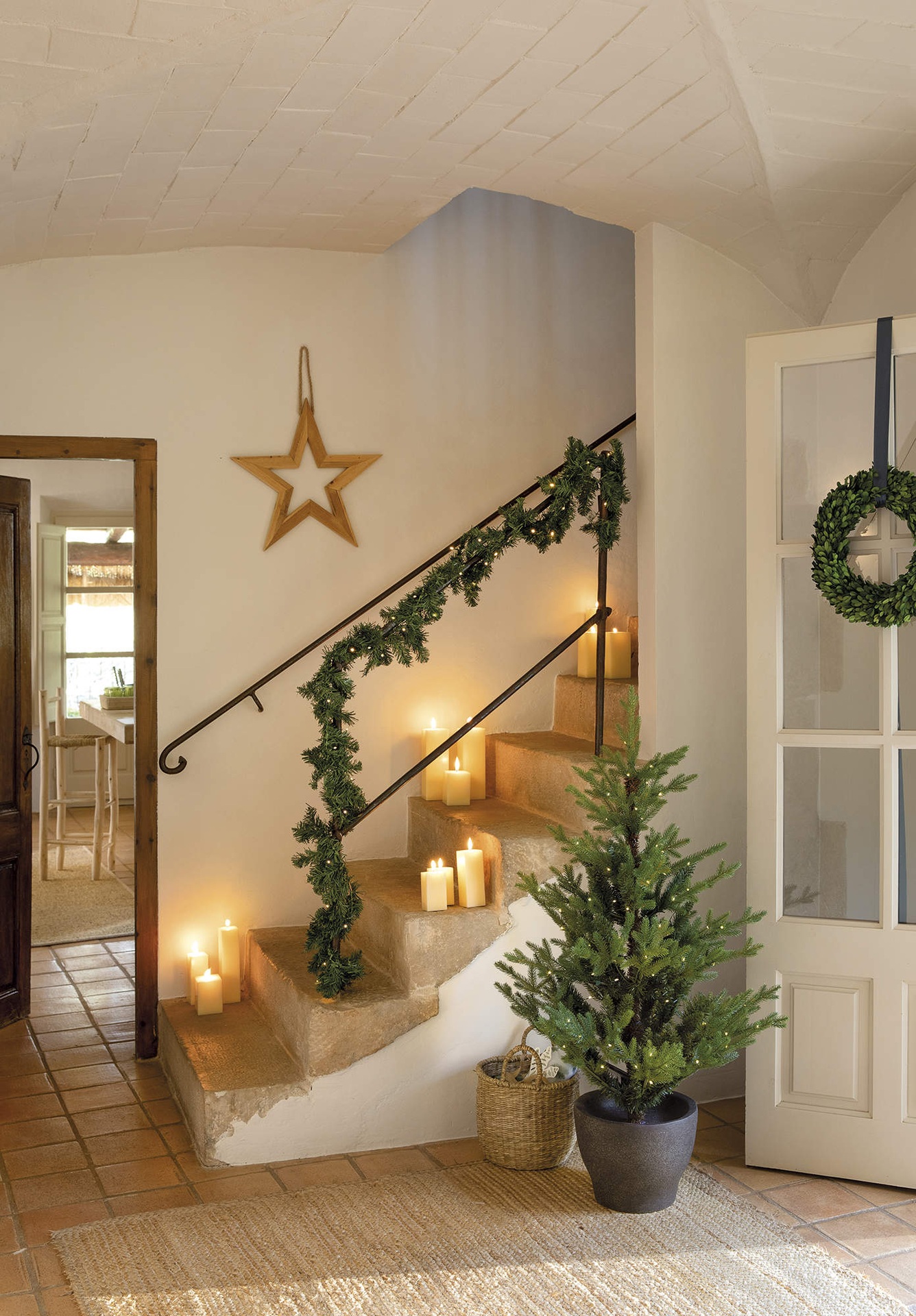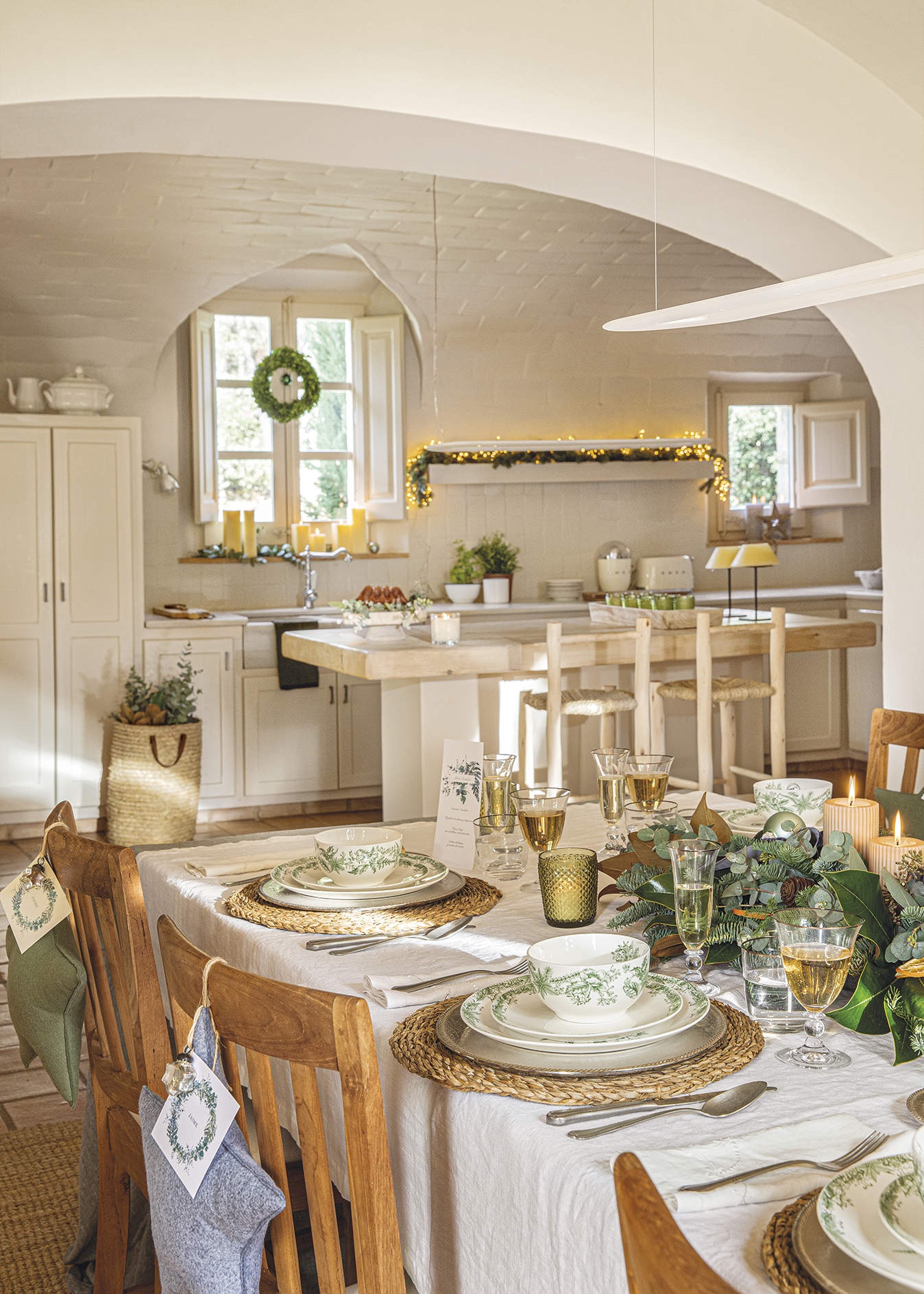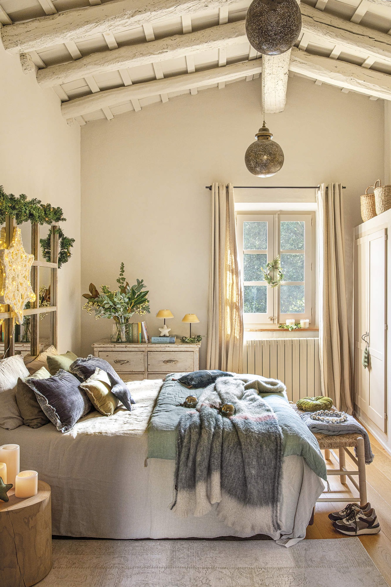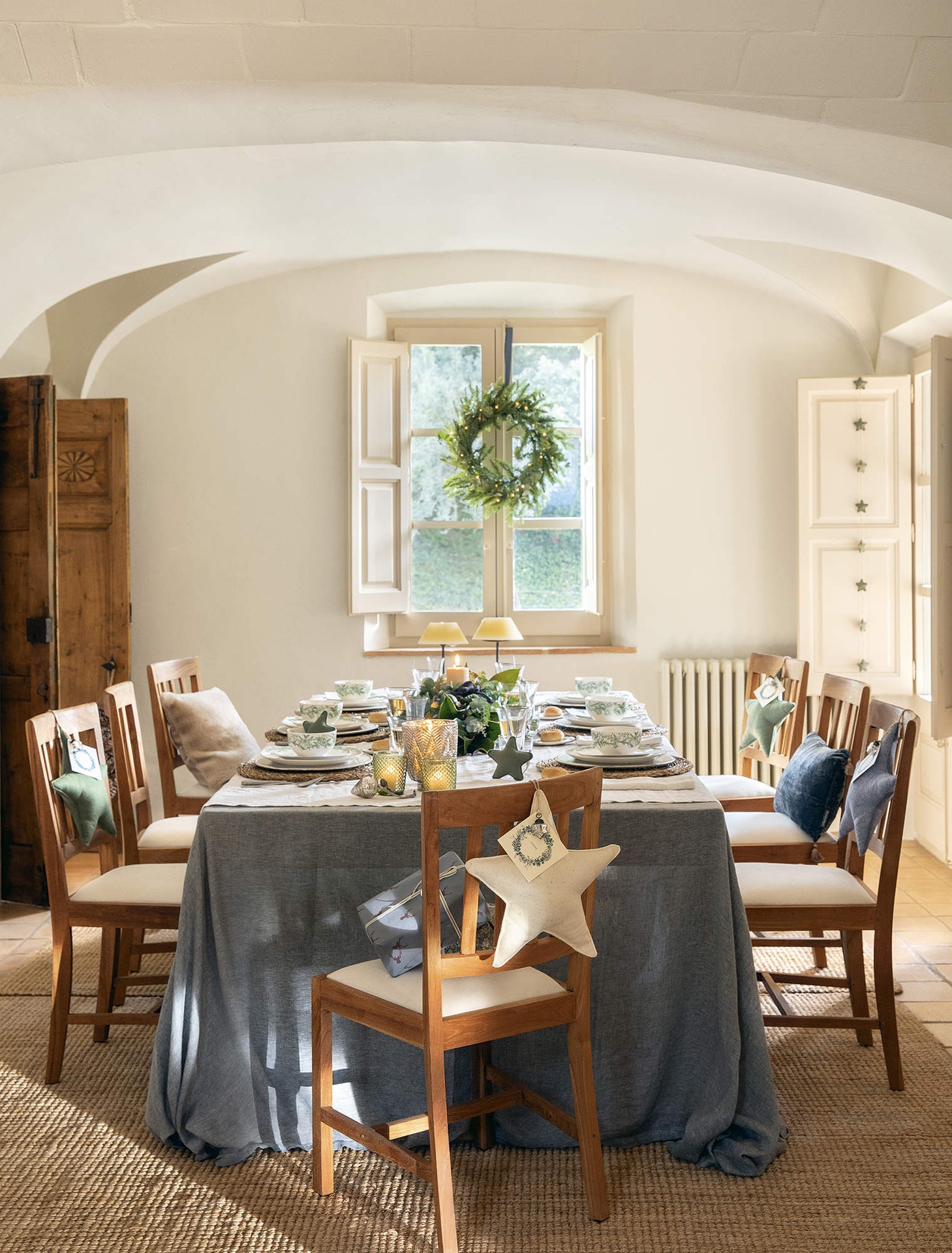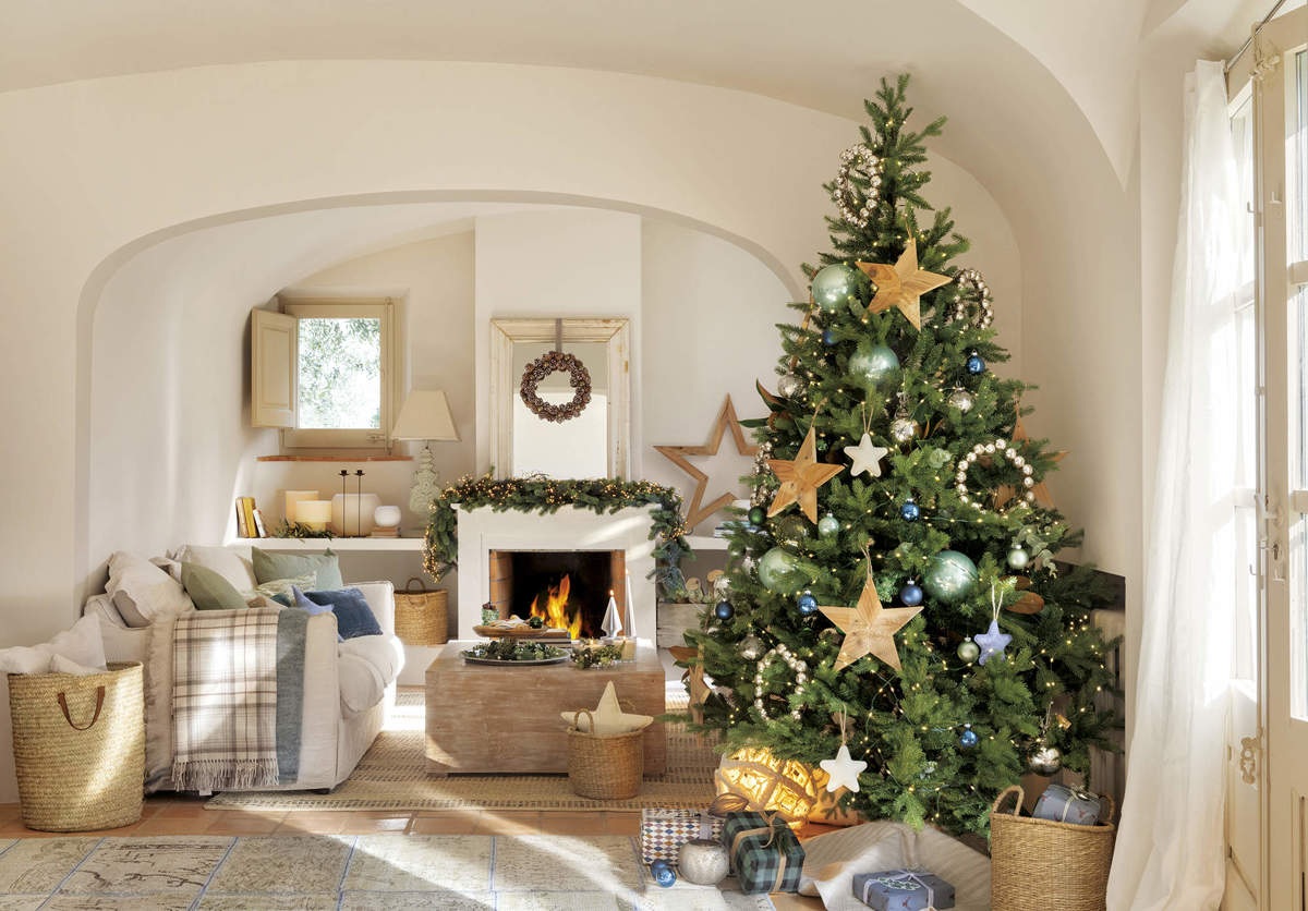 Ebben a vidéki házban kék, zöld és ezüst árnyalatokban képzelték el a karácsonyi dekorációt. A melegséget sugárzó, ragyogó díszítés világos és hívogató, a fő színek a fán, a textíliákon, az asztalon, sőt még az ajándékcsomagoláson is visszaköszönnek. A fa különlegessége a kézzel készített díszek, amely nemcsak fenntartható módja a dekorálásnak, de sokkal személyesebbé is teszi az ünnepet.