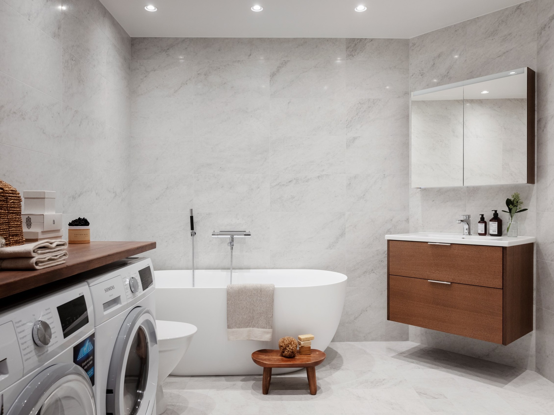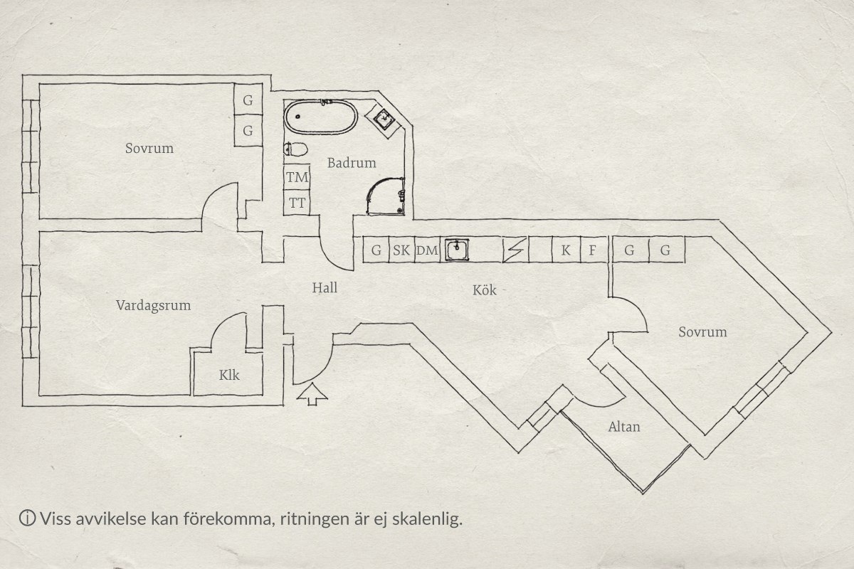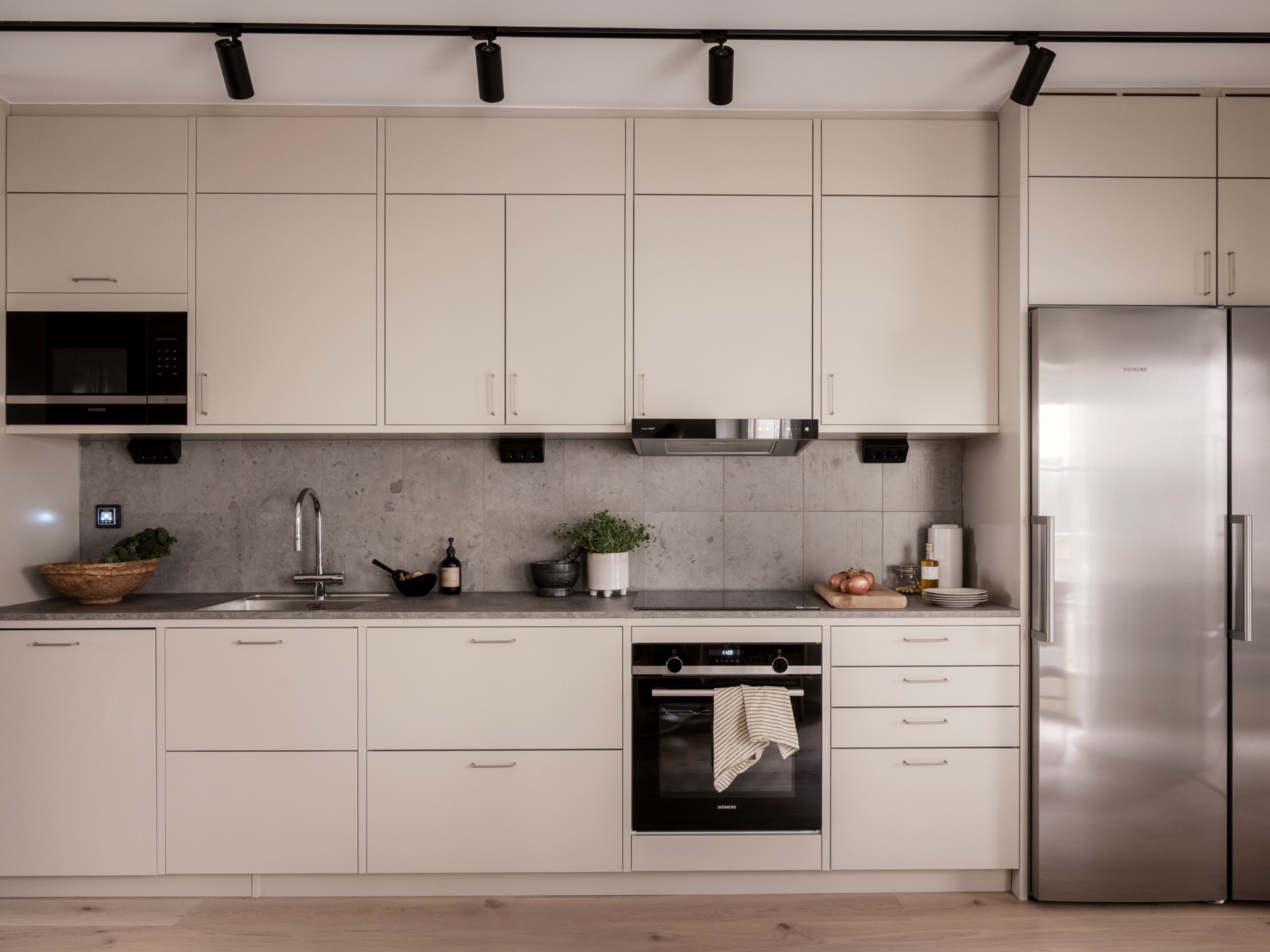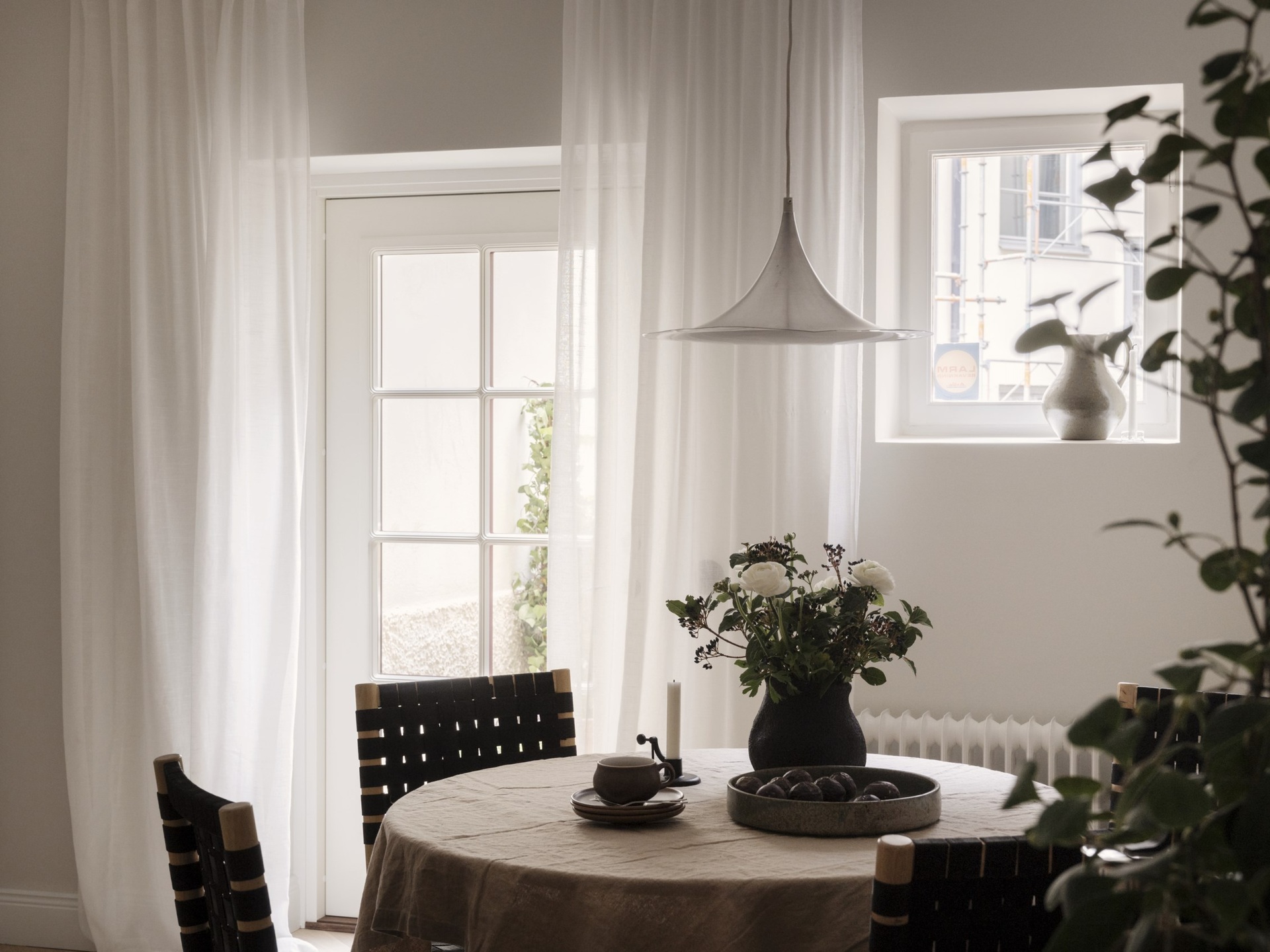 Ezt a 84 m²-es lakást egy régi irodából alakították át. Szépen ötvözi az 1912-ben épült ház régi elemeit a letisztult, északi stílussal. A skandináv dekoráció a lágy tónusok palettáját használja néha olyan luxus anyagokkal ötvözve, mint a bejárati hallban található szürke és fehér kockás márványpadló. A lakás minden helyiségét fa díszlécek és lábazatok díszítik, amelyeket gondosan megőriztek a régi épületből. Az apartman hatalmas ablakai rengeteg természetes fényt engednek be, kiemelve a magas mennyezet nyújtotta tágasságot. A két hálószobás ingatlan alaprajzán is látható, hogy nagyon sok a ferde falsík, amit figyelembe kellett venni a nyitott konyha-étkező, az egyik hálószoba és a fürdőszoba berendezésénél.