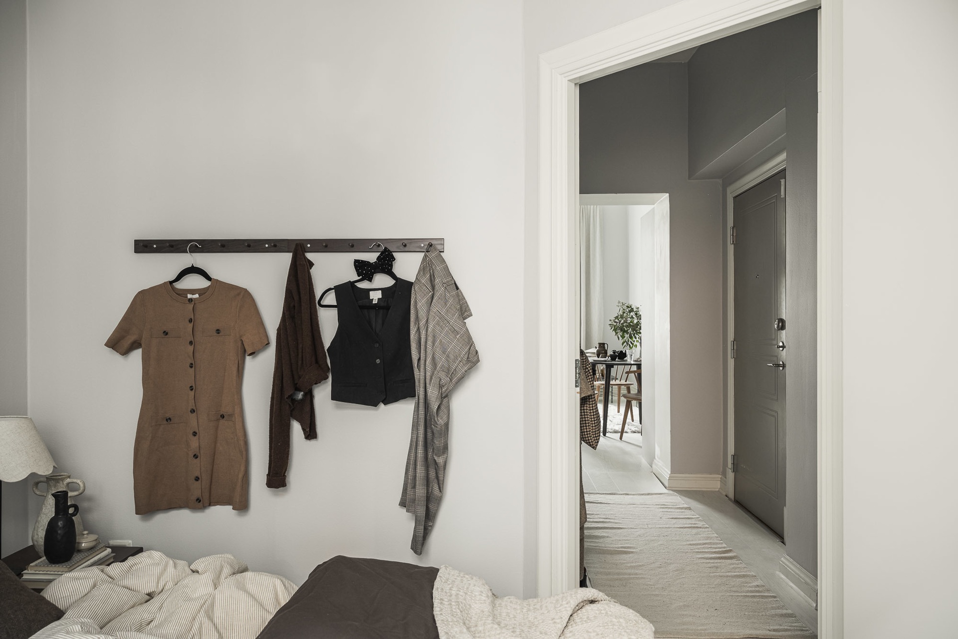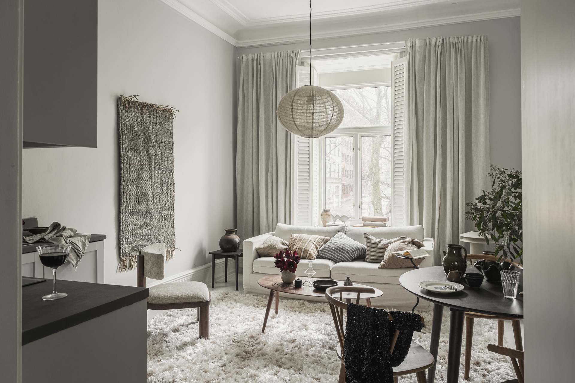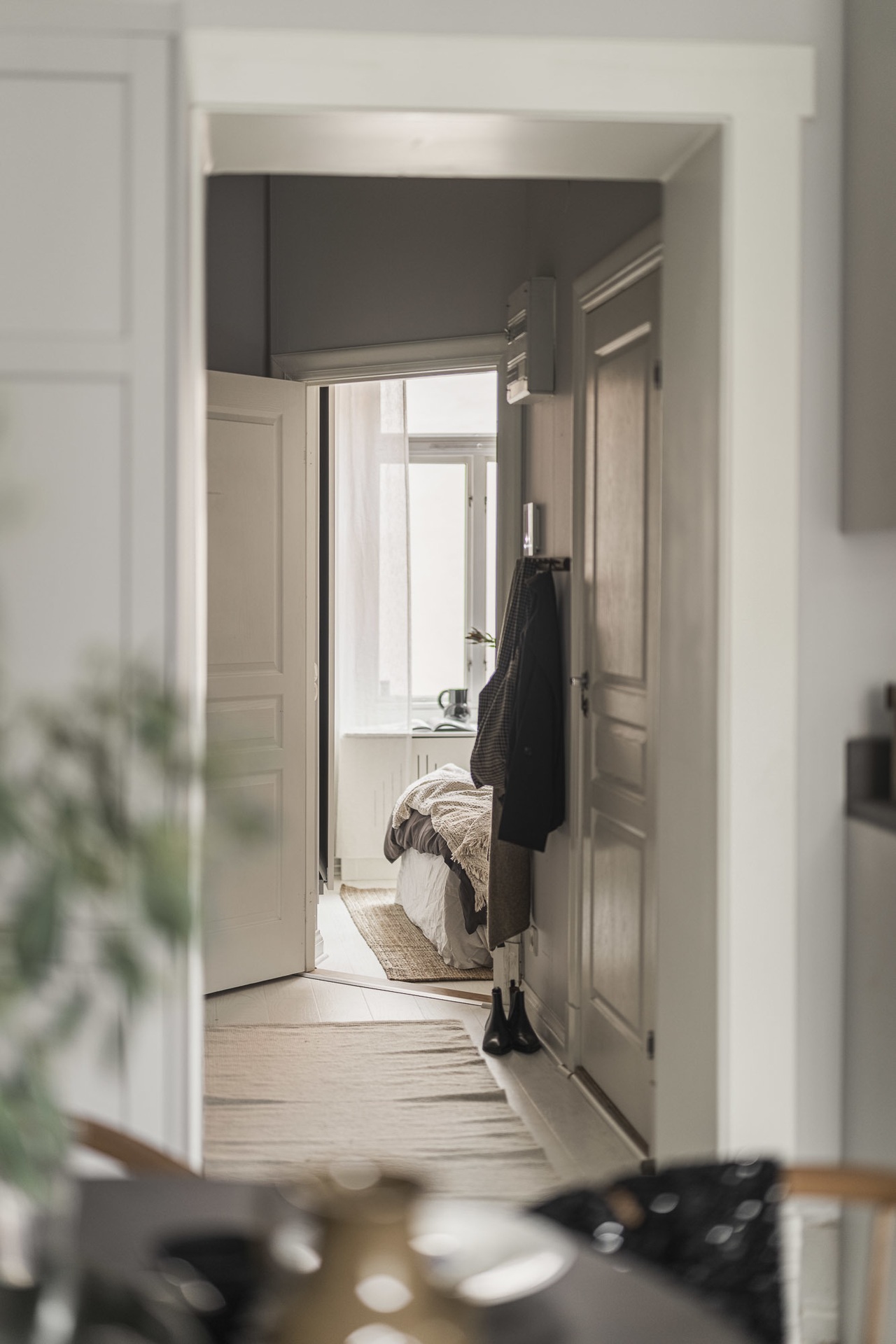 Egy 1877-ben tervezett épület ad otthont ennek a felújított lakásnak, ahol a nagy ablakokon beáradó fény kiemeli a gyönyörű stukkókat és spalettával ellátott ablakokat. A gondos felújításnak köszönhetően a 39 nm-es otthon kortárs életstílust kínál, skandináv dekorációval és semleges tónusokkal. Világos kőrisfa padló borítja az összes helyiséget, a falakat pedig világos szürkére festették. Ebbe a hibátlan univerzumban egy olyan berendezési stílust választottak, amely egyszerre modern és klasszikus, a meleg tónusú szürke árnyalatok pedig nyugodt légkört teremtenek.