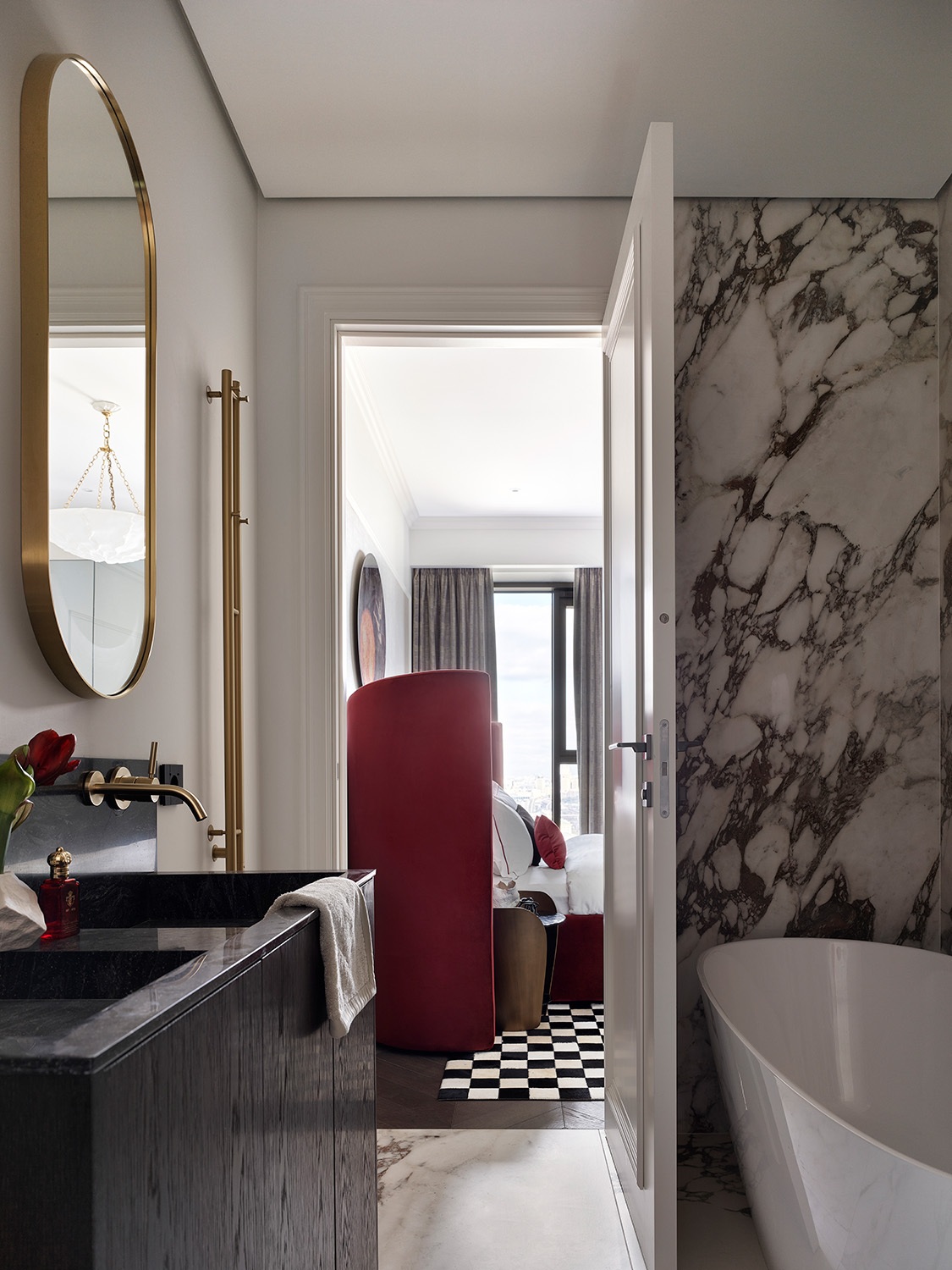 Ez a 70 m²-es lakás egy városi panorámával rendelkező lakóépület 22. emeletén található. A tulajdonosa egy sikeres üzletember, akit elbűvölt a világos ingatlan, viszont olyan egyedi enteriőrre vágyott, ami jobban tükrözi a személyiségét. A tervezési feladatokhoz szakértő segítségét kérte, aki elsősorban a nappalira és a hálószobára összpontosított. Az eredeti elrendezés megmaradt, a belsőépítész színeket adott hozzá, néha merészen, mint például a fő hálószobában. Vannak meglepő elemek is, mint például a kávézóasztal, amelynek alapja egy repülőgép-turbinából készült.