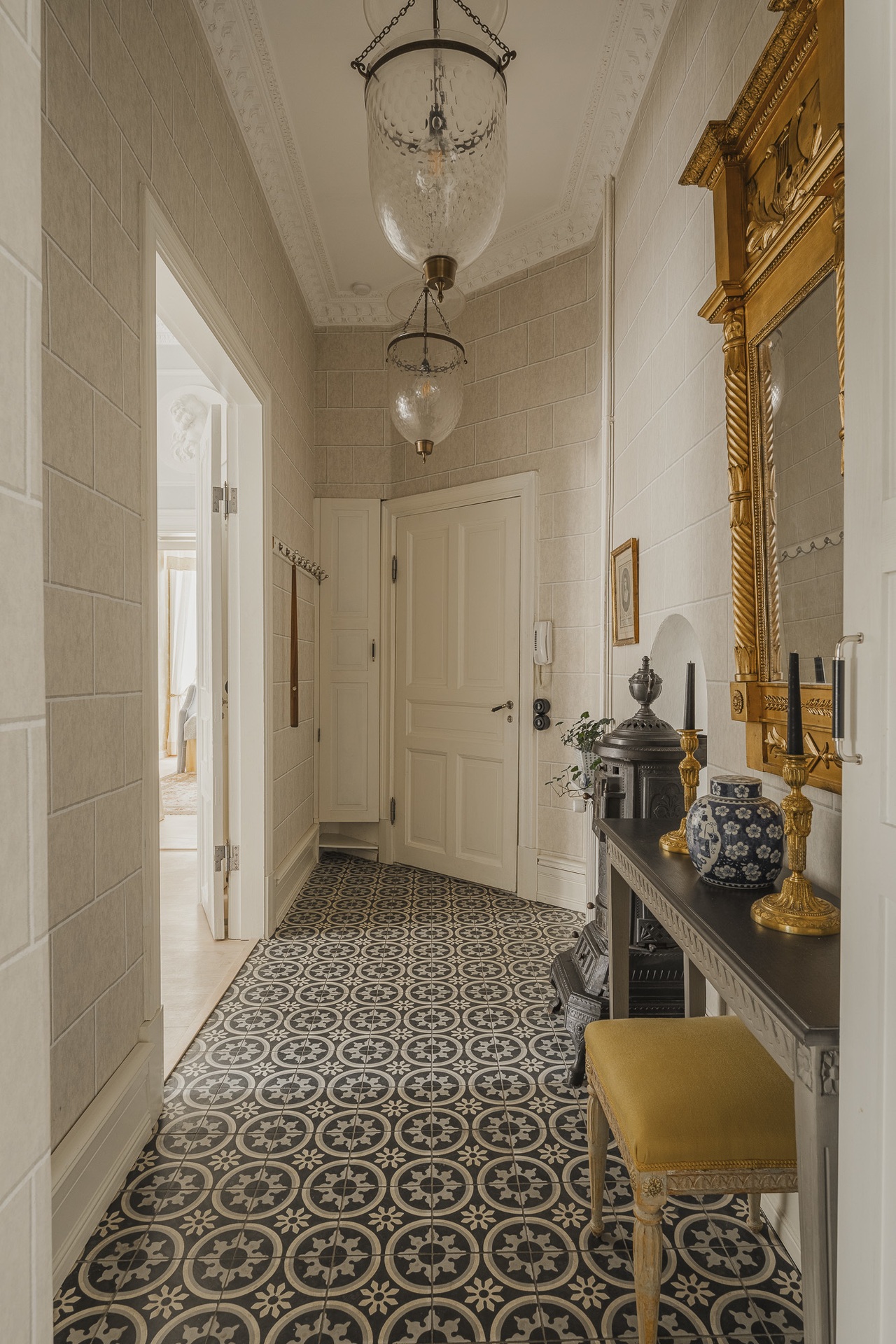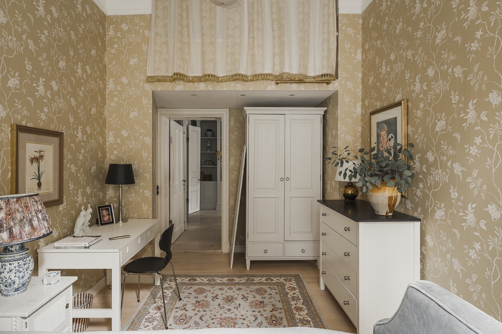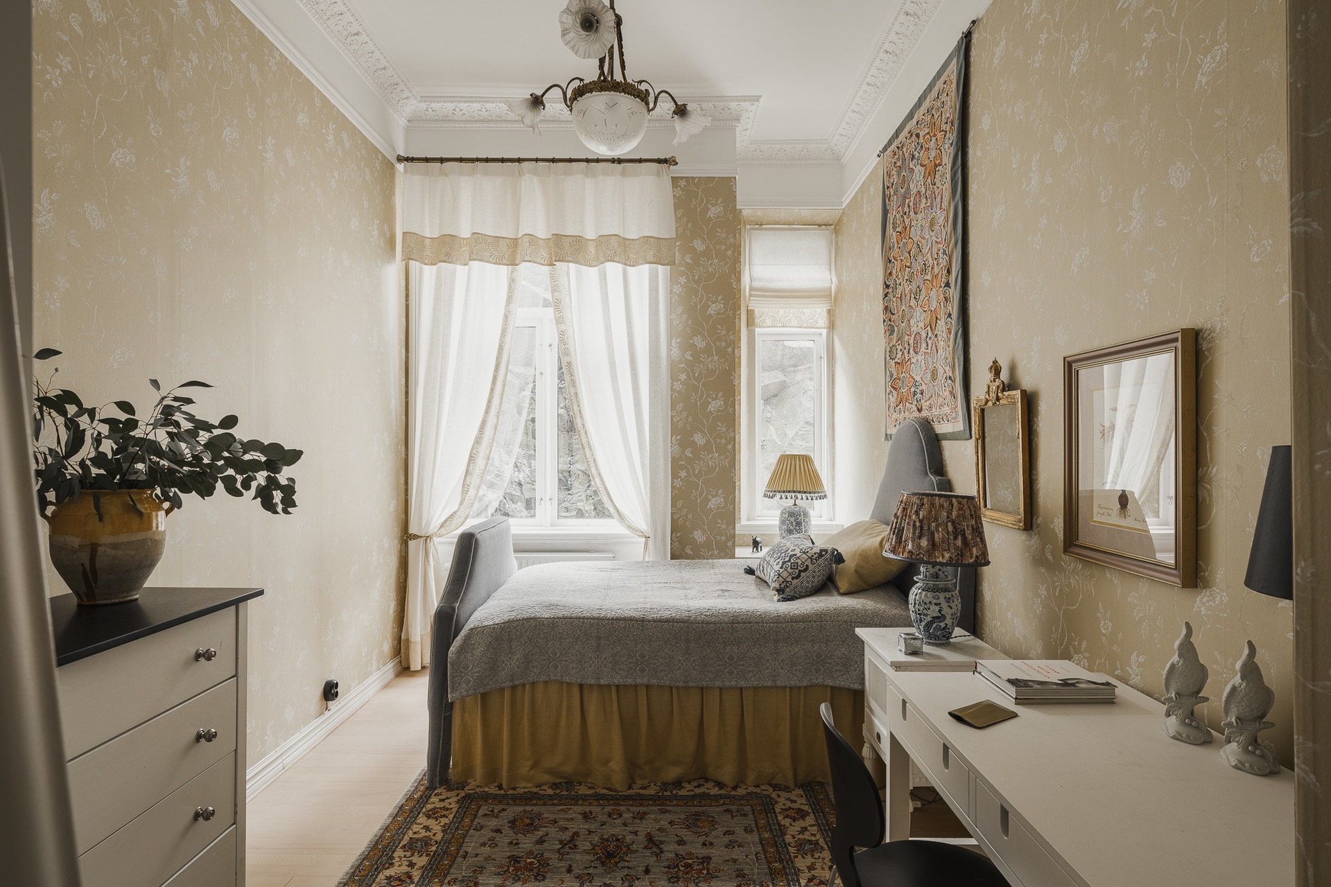 Ritkaságszámba megy, hogy egy kétszobás lakás ilyen nagy alapterülettel rendelkezzen modern épületekben. Ez az 89 m²-es, kétszobás lakás azonban egy 1878-ban épült házban található, így a 19. századi építészetre jellemző tágas terek jellemzik. Ez a különleges lakás valódi vizuális élményt nyújt. Olyan embereket szólít meg igazán, akik az új bútorok helyett a régiségek rajongói, és akik olyan tárgyakkal szeretik körbevenni magukat, amelyeknek története van. A konyha különösen lenyűgöző, amely vidéki hangulatot áraszt. Halvány zöld színe, klasszikus tömörfa ajtajai, réz részletei és Carrarai márvány munkalapjai elegáns és bájos Gustav stílusú enteriőrré varázsolják. Mérete lehetővé teszi, hogy étkezőasztalt is elhelyezzenek benne a mindennapi étkezésekhez. A tágas nappali szintén megőrizte eredeti, antik díszítőelemeit, például a mennyezeti stukkókat és festett medalionokat. A fő hálószobát a Pierre Frey francia tapétája díszíti, amely különleges hangulatot ad a helyiségnek. A második, vendégszobaként funkcionáló háló egy galériát is kapott. A fürdőszoba teljes felújításon esett át: márványmozaik padló, csempézett falak és tapéta teszi teljessé.