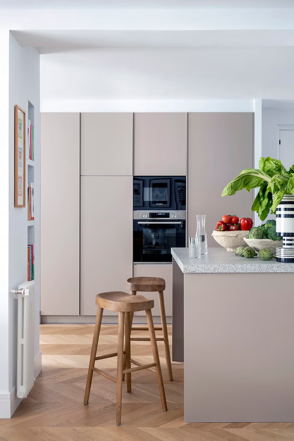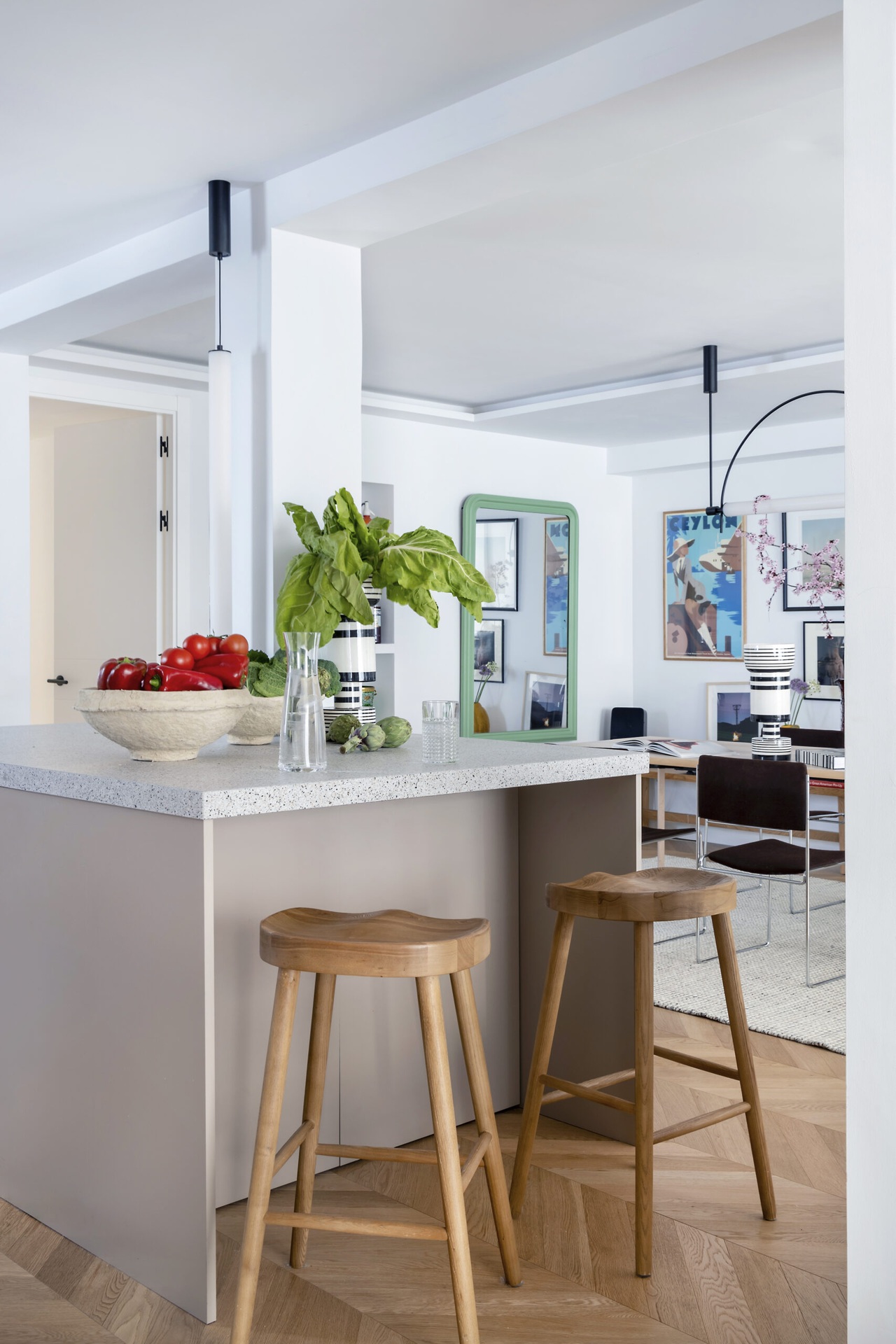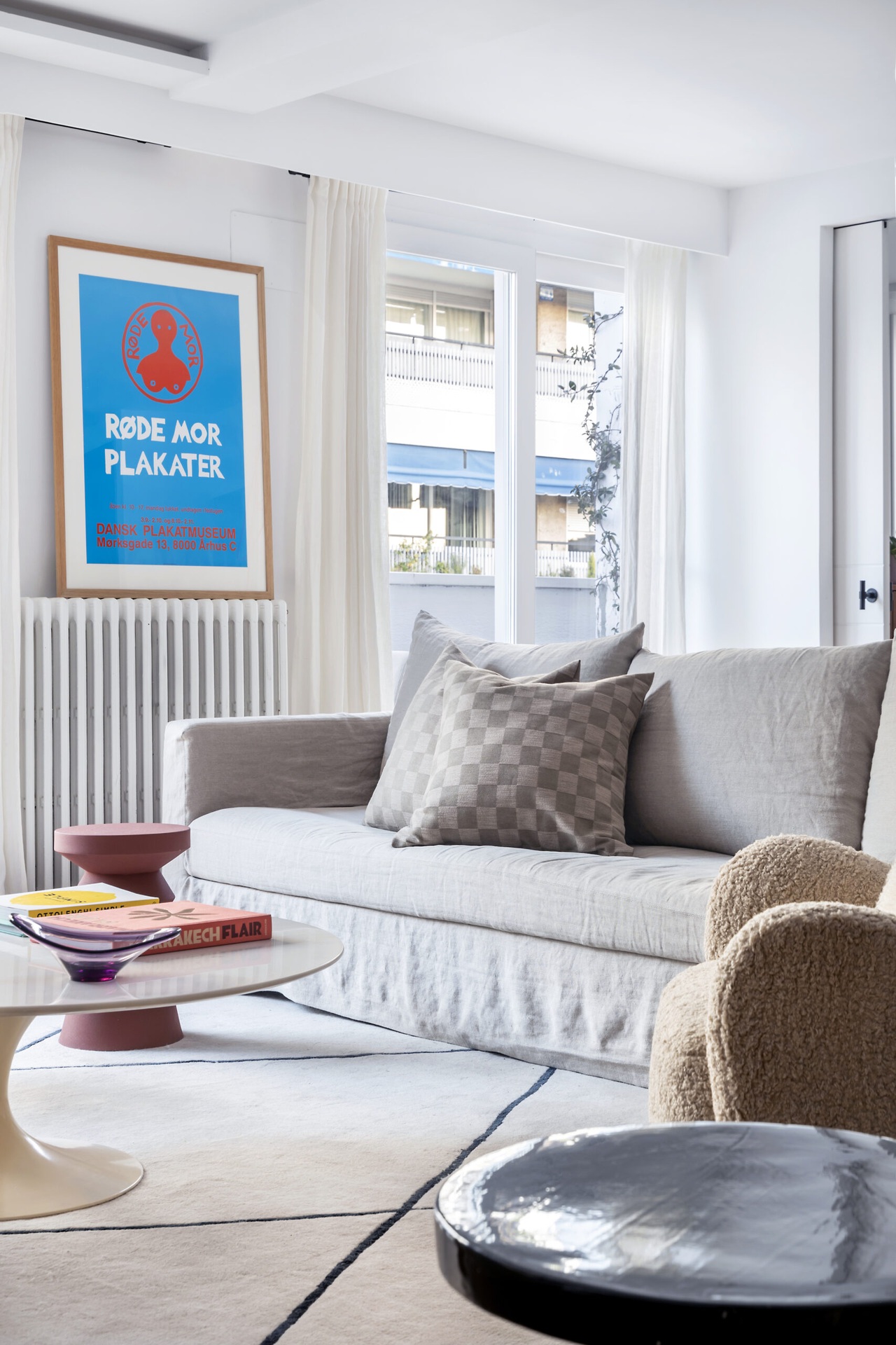 Ebben a lakásban igazi bravúrt hajtottak végre: egy sötét, tagolt alaprajzú ingatlant alakítottak át világos, tágas és kortárs otthonná. Az alapot a fehér szín adja – időtlen választás, amely vizuálisan tágítja a teret és fokozza a természetes fény hatását. Ehhez társulnak az egyedi bútorok, műalkotások és finoman elhelyezett színes részletek, amelyek karaktert visznek a minimalista alapok közé. A lakás egy tágas nappalival nyílik meg, amelyhez szorosan kapcsolódik az amerikai stílusú konyha és egy központi sziget, így a tér nemcsak látványra lett egységesebb, de élhetőbb is. A nyitott térszervezés részeként egy kényelmes étkező is helyet kapott, amely tökéletesen kiszolgálja a tulajdonos pár igényeit, akár baráti összejövetelekről, akár családi vacsorákról van szó.