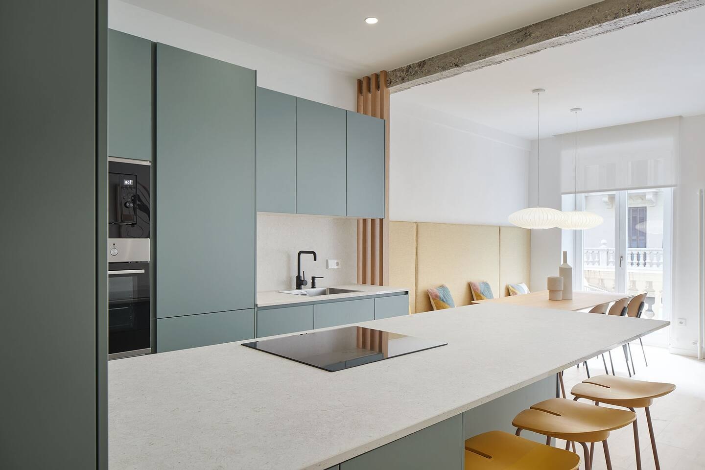 Ez a gyönyörűen felújított lakás a szabadság, a stílus és a kényelem tökéletes kombinációja. Világos fa, zsályazöld és mustársárga tónusok uralják a tereket, természetes, meleg hangulatot árasztva. A nagy nappali-étkező-konyha tér a lakás szíve, ahonnan egy hangulatos erkélyre léphetünk ki. A három hálószoba kényelmes és letisztult, a dekoráció pedig minden részletében laza eleganciát sugall.
