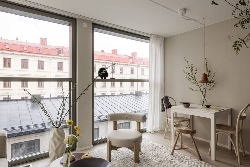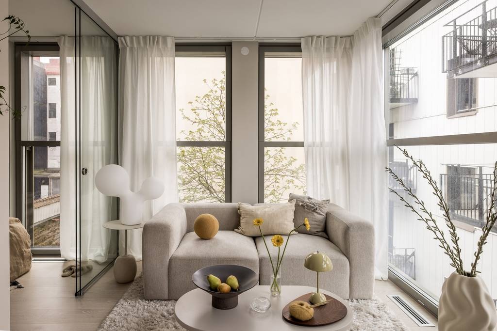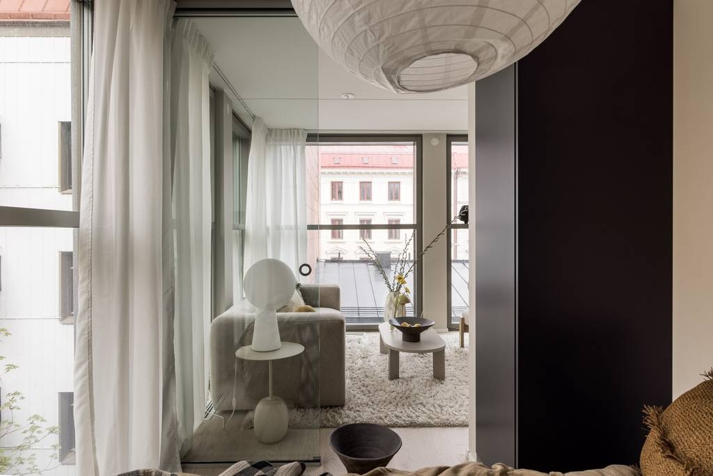 Ez a 34 m²-es otthon a bizonyíték rá, hogy a térérzet és a stílus nem a négyzetméteren múlik. A padlótól mennyezetig érő ablakok két oldalról árasztják el fénnyel a nappalit és az üvegfallal határolt hálószobát, így a helyiségek vizuálisan összekapcsolódnak. A nyitott konyha sötét frontjai elegáns kontrasztban állnak a fehér márvány munkalappal és hátfallal, a nappali letisztult bútorai pedig egy puha szőnyeggel válnak igazán hívogatóvá. A lakás minden részletében átgondolt: az egyszerűség és a luxus apró jelei harmonikusan találkoznak, létrehozva egy kényelmes, mégis modern városi menedéket, ahol a fény, a tágasság és a stílus kéz a kézben jár.
