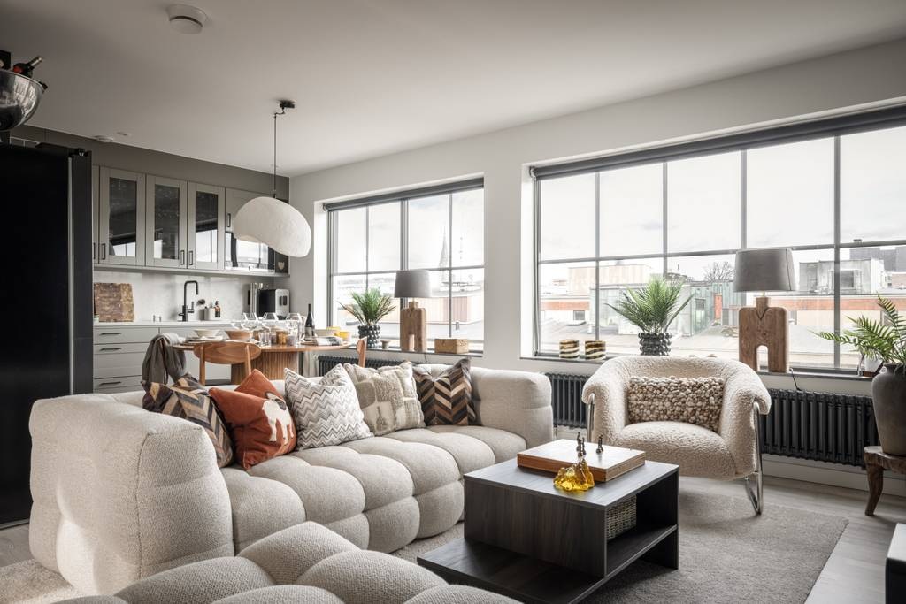 Egy svéd ház legfelső szintjén található ez a 61 m²-es, egy hálószobás designer lakás, amely egyszerre sugároz kortárs eleganciát és kényelmet. Az egységet a világos tölgyparketta és a szürkés árnyalatú falak adják, melyeket a hatalmas ablakokon beáradó fény tesz igazán ragyogóvá. A tágas nappali és az amerikai konyha modern, mégis barátságos atmoszférát teremt, ahol a minőségi anyagok és a skandináv letisztultság dominálnak. A kifinomult, prémium fürdőszoba és a fényárban úszó hálószoba tökéletes harmóniát sugall. A közel 25 m²-es terasz természetes kiterjesztése a lakásnak: ideális helyszín a város látványának élvezetére.