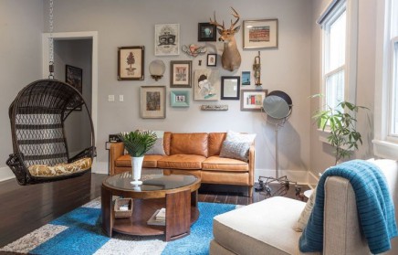 Egy nyitott, merészen és kreatívan felujított lakás New Orleansban, ahol a tulajdonos finoman ötvözi a régies és modern elemeket. Gyönyörű faburkolatú mennyezet a konyhában, téglaburkolatú, kétoldalú kandalló a nappaliban, ötletes térszervezés, hangulatos kiegészítők és szép bútorok használata teszik nagyon egyedivé ezt a kis otthont.